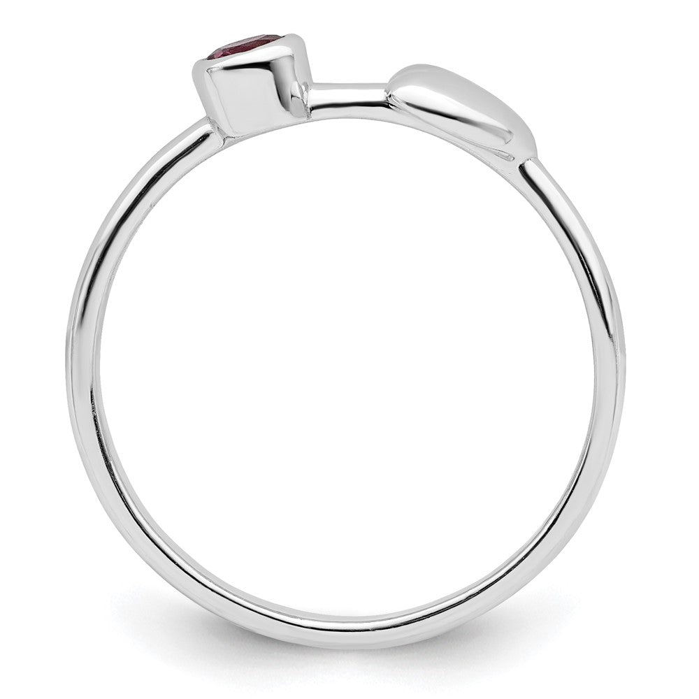 Sterling Silver Rhodium-plated Polished Circle Rhodolite Garnet Heart Ring