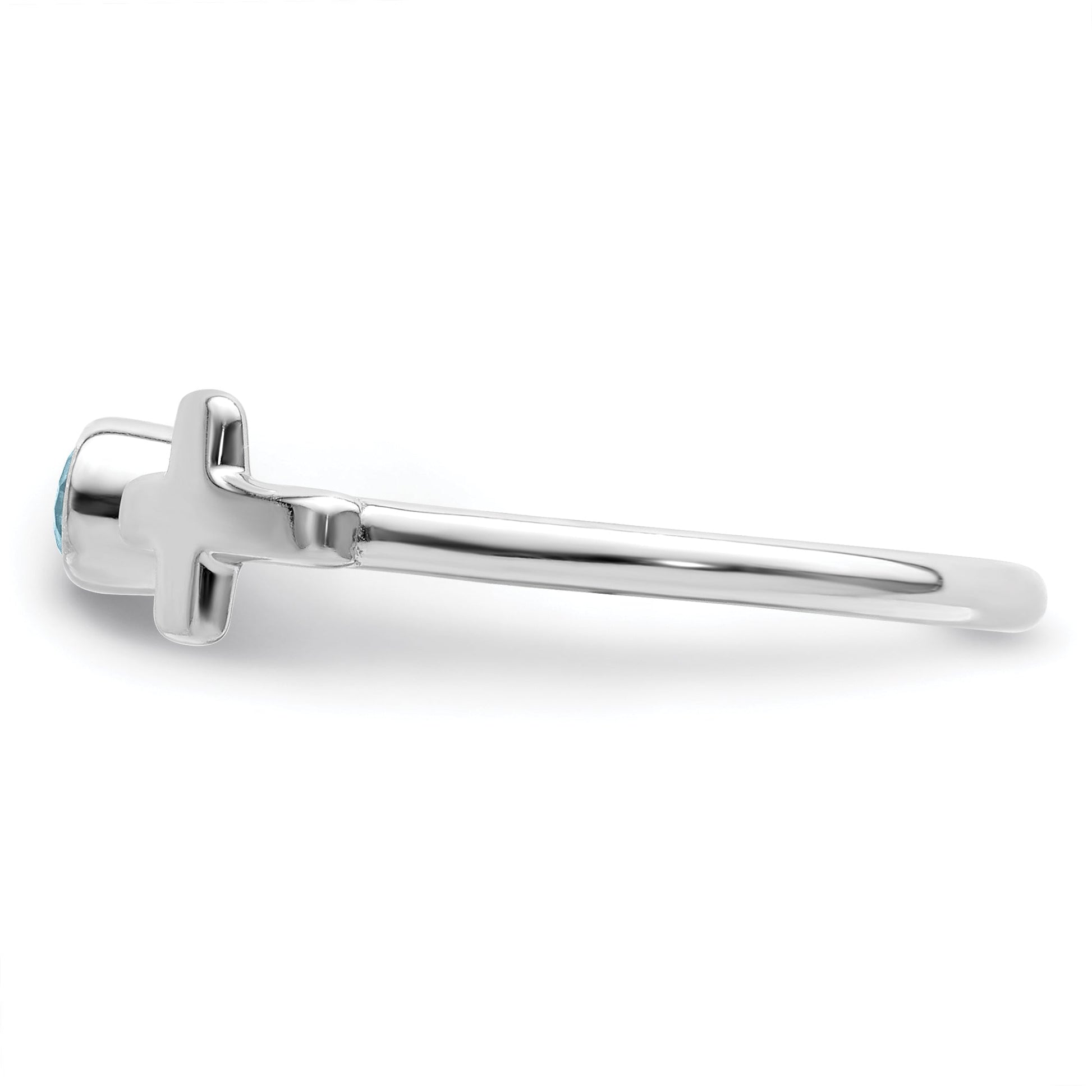 The Sterling Silver Rhodium-Plated Polished Cross Ls Blue Topaz Ring brings timeless elegance and faith together. Crafted from 925 sterling silver, this beautiful piece features a single London Blue Topaz, bezel-set to catch light from any angle. Weighing 0.15 carats, the topaz adds a striking blue hue that pairs perfectly with the polished rhodium-plating, giving the ring a long-lasting shine. While this women's ring cannot be resized, it makes an ideal birthstone gift for December birthdays. Enhance your collection with this classic yet stylish Sterling Silver Rhodium-Plated Polished Cross Ls Blue Topaz Ring.