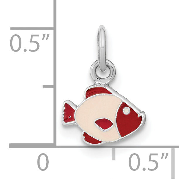 Introducing the Sterling Silver Rhodium-Plated Polished Enameled Fish Pendant—a charming piece that will steal your little one's heart. Crafted from 925 sterling silver, it boasts a sleek rhodium finish for extra shine and durability. Measuring 13 mm in length, with charming details just under 10 mm wide, it flaunts a solid design that withstands playful adventures. The enameled fish theme adds a whimsical touch perfect for girls. This children's pendant not only looks cute but is designed to last. Discover the magic of the Sterling Silver Rhodium-Plated Polished Enameled Fish Pendant today.