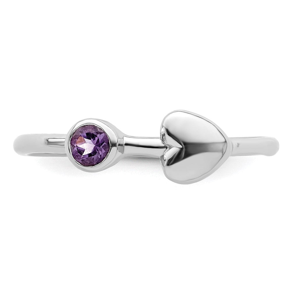 The Sterling Silver Rhodium-Plated Polished Heart Amethyst Ring is a stunning choice for those seeking elegance. Crafted from 925 sterling silver, this ring shines with a polished finish, giving it a refined look. At the center, a natural amethyst stone sits in a bezel setting, flaunting a rich purple color symbolic of February birthdays. Its rhodium plating offers additional durability, while the 0.1-carat gemstone adds just the right touch of sparkle. Designed for women and not resizable, this ring promises to be a cherished piece. The Sterling Silver Rhodium-Plated Polished Heart Amethyst Ring is the perfect gift for any occasion.