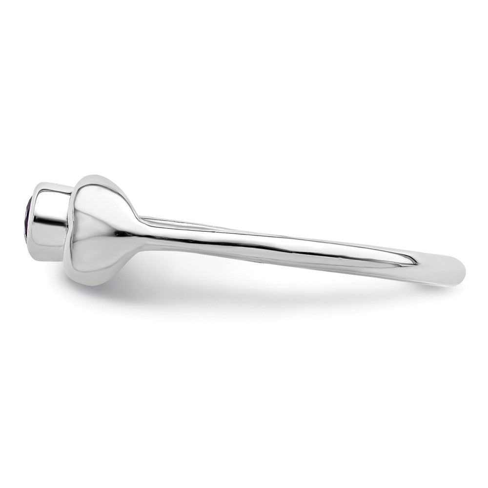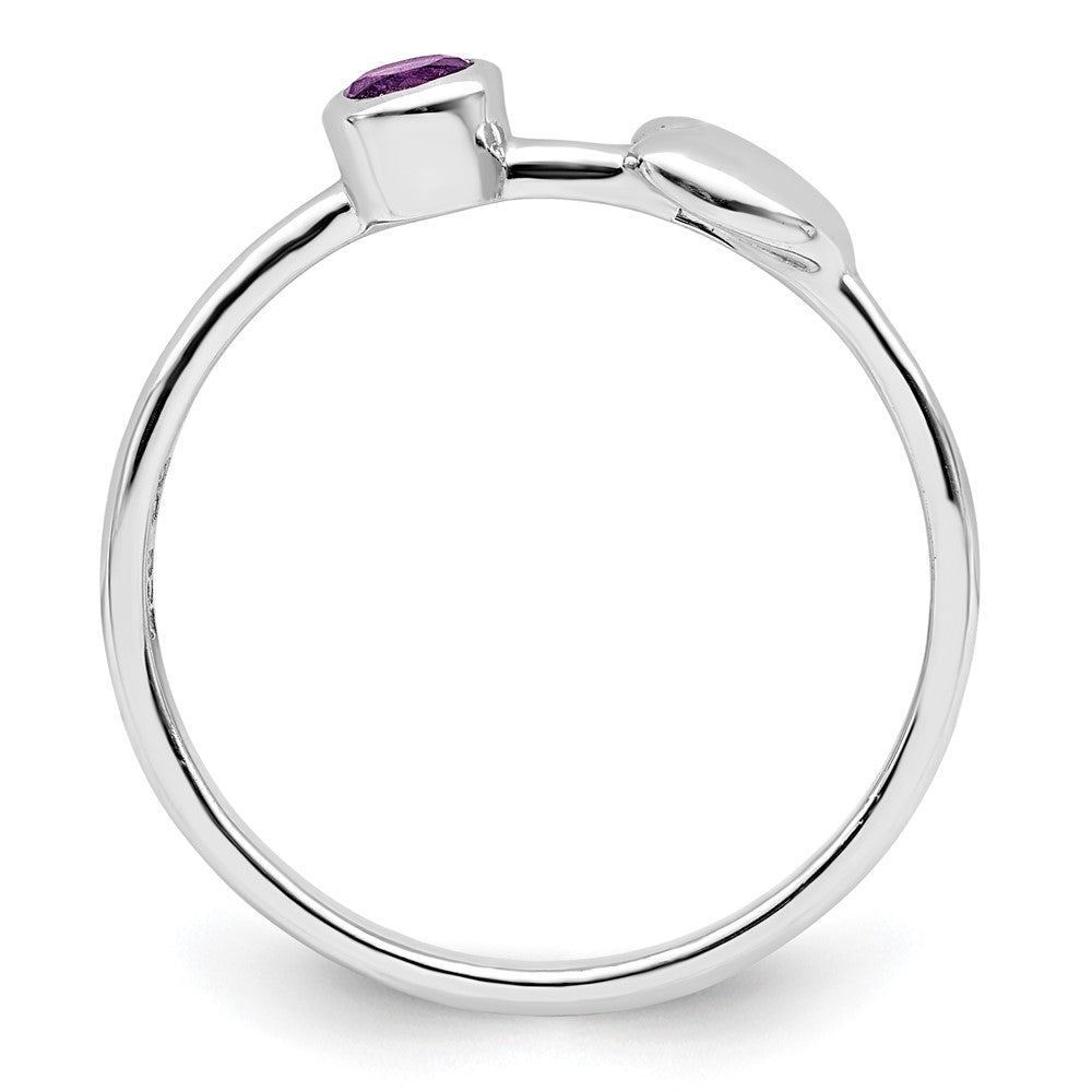 This beautiful piece of jewelry is a Sterling Silver Rhodium-plated Polished Heart Amethyst Ring that is perfect for any woman. The ring features a polished finish and has a single natural Amethyst stone set in a bezel setting. The vibrant purple color of the stone makes it the perfect birthstone ring for the month of February. The ring weighs 0.1 ct and is made with 925 Sterling Silver, ensuring durability and longevity. The rhodium plating adds an additional layer of protection and enhances the shine of the ring. This ring is sold individually and is not sizeable. The complete set of stones is included in the ring, making it a complete and beautiful piece of jewelry.