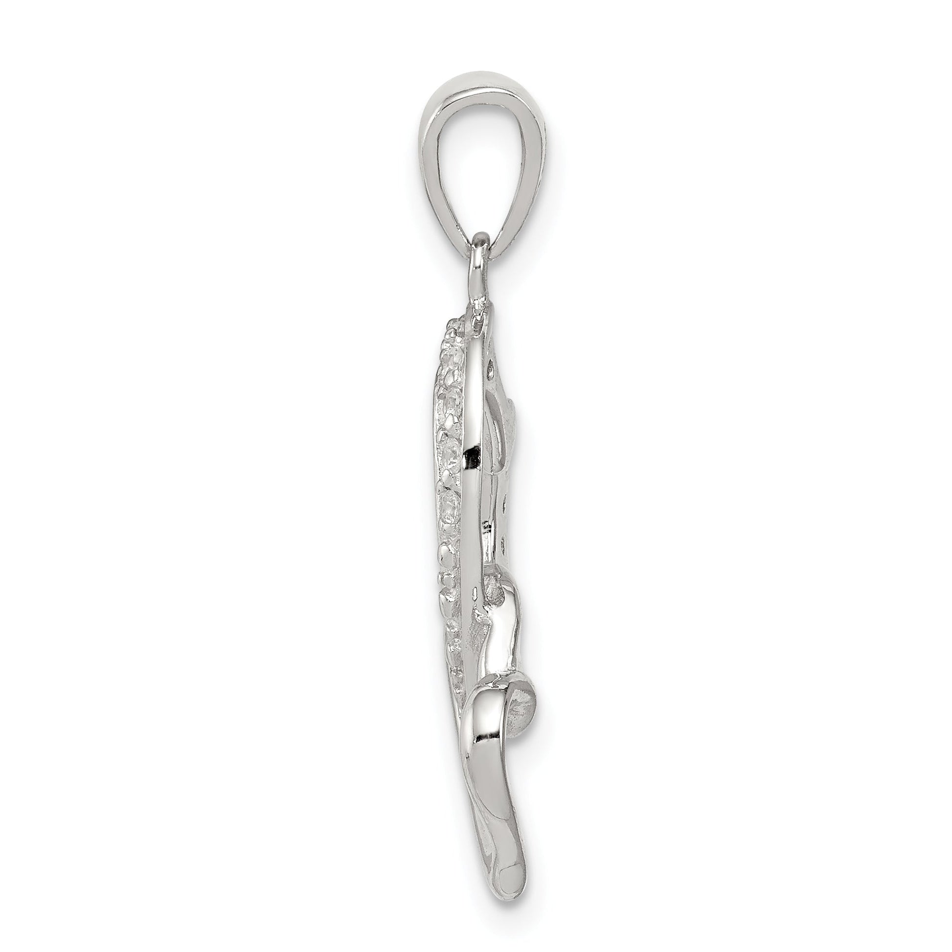 The Sterling Silver Rhodium-Plated Polished Heart and CZ Double Interconnected Pendant is a timeless piece that adds a splash of elegance to any outfit. Crafted from 925 sterling silver and coated with radiant rhodium plating, this pendant shines brilliantly. The pendant showcases interconnected heart shapes adorned with sparkling cubic zirconia stones, known for their dazzling clarity. With its polished finish, it emits a sophisticated glow, making it perfect for both casual and formal occasions. Weighing just right, it provides comfort without compromising on style. The Sterling Silver Rhodium-Plated Polished Heart and CZ Double Interconnected Pendant is an ideal accessory to enhance your jewelry collection.