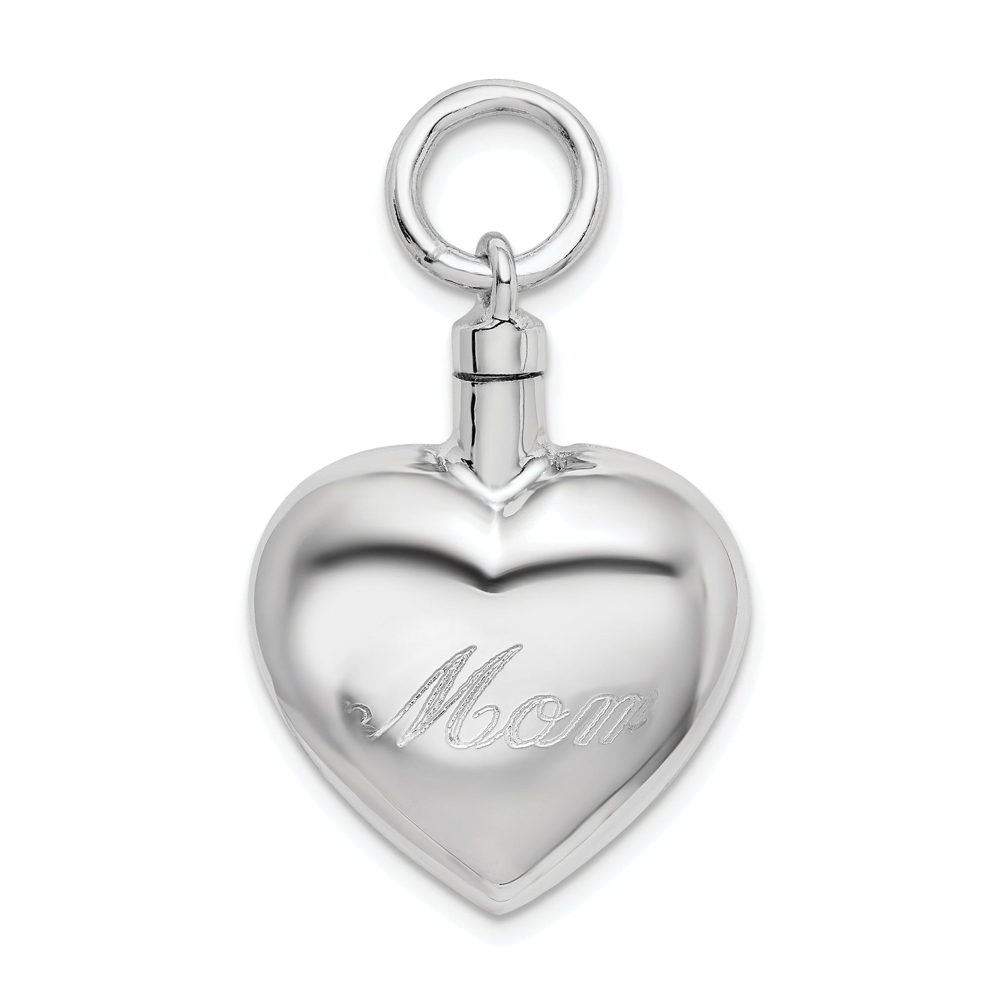 The Sterling Silver Rhodium-Plated Polished Heart Ash Holder Pendant combines elegance with purpose. Crafted from 925 sterling silver, this pendant boasts a sleek rhodium finish giving it a dazzling, long-lasting shine. Measuring 25.4 mm in length and 20.5 mm in width, it provides just the right subtlety while still being eye-catching. Designed with a practical opening feature, this pendant allows for a secure and personal keepsake. Its die-struck manufacturing process ensures durability with a fine touch. Perfect for everyday wear, the Sterling Silver Heart Ash Holder Pendant is a timeless piece of jewelry that blends sentiment with style.