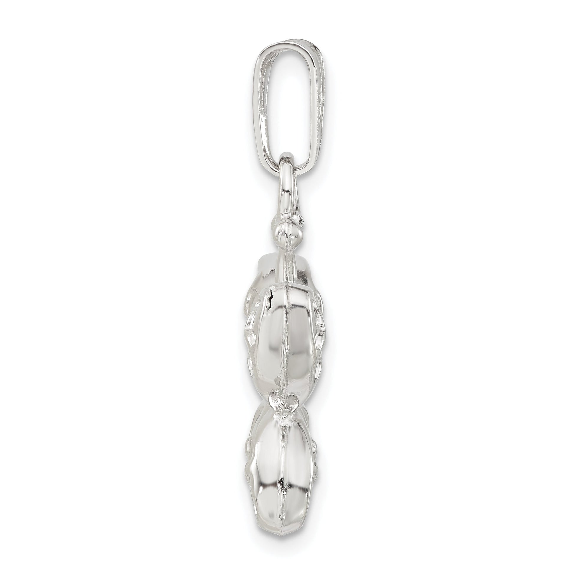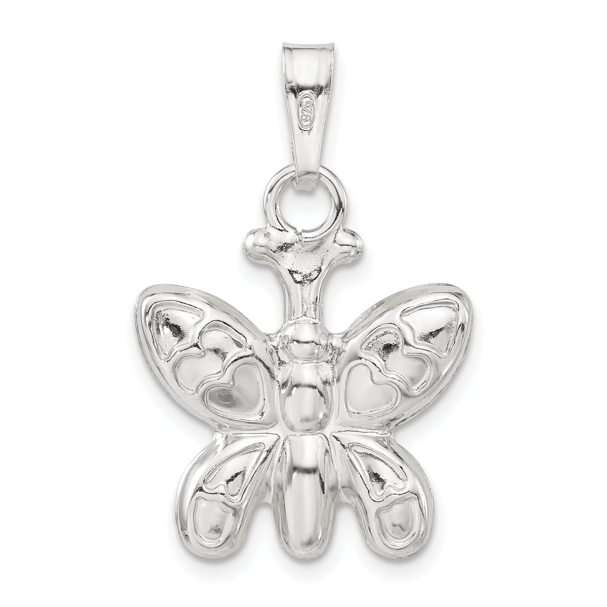 Discover the Sterling Silver Rhodium-Plated Polished Puffed Butterfly Charm, an elegant piece capturing grace in a stunning design. Crafted from 925 sterling silver, this charm shines with a polished rhodium finish, adding a brilliant silver tone. Its reversible feature offers variety to match any style. It measures 31.1 mm in length and 20.3 mm in width, striking the perfect balance of refinement and subtlety. This hollow, lightweight charm is ideal for women who appreciate themed elegance in their jewelry. Elevate your collection with the Sterling Silver Rhodium-Plated Polished Puffed Butterfly Charm, and let your style flutter.