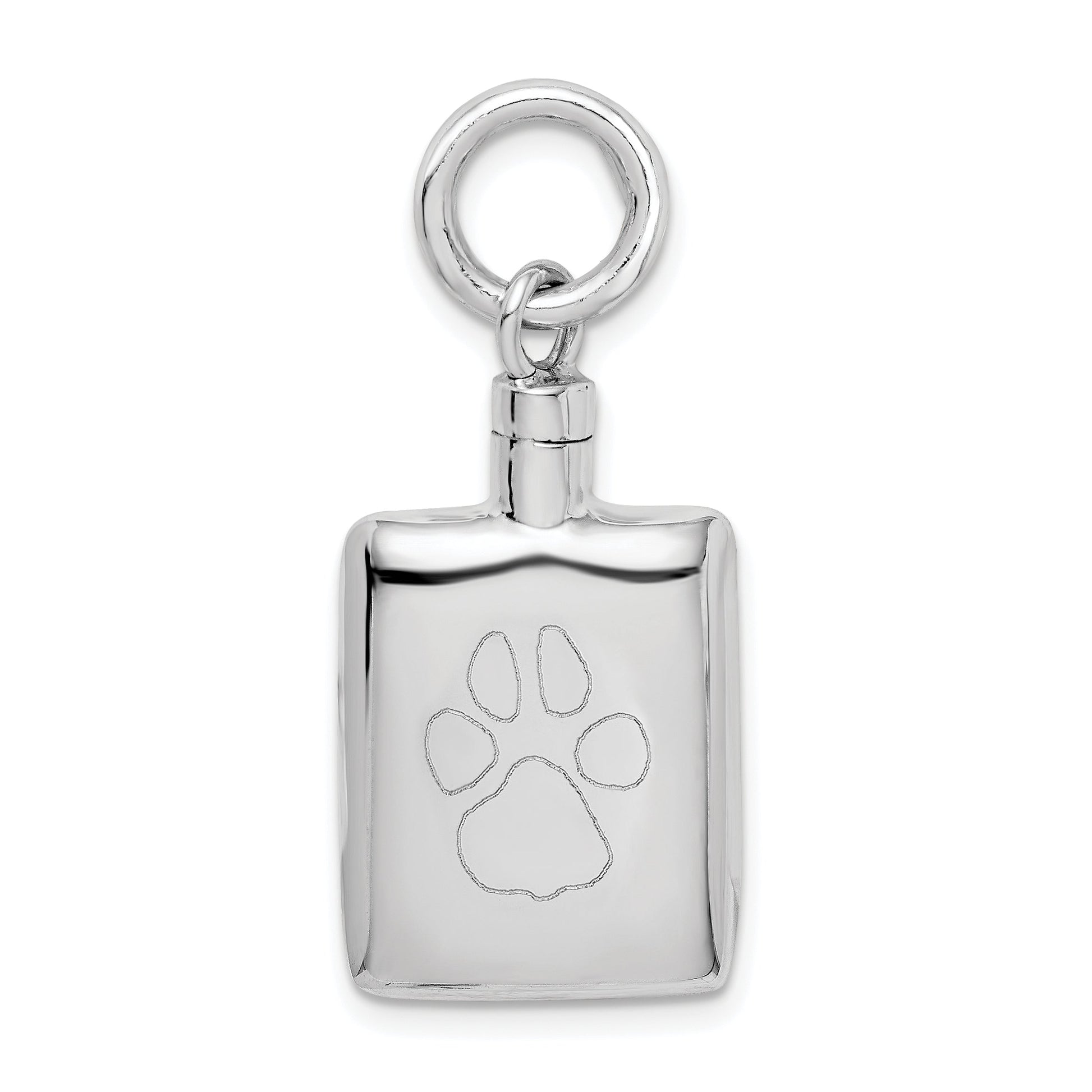 Discover elegance with the Sterling Silver Rhodium-Plated Polished Rectangular Ash Holder Pendant. Crafted in 925 sterling silver, this pendant boasts a sleek rhodium finish for lasting brilliance. Measuring 22.85 mm in length and 14.7 mm in width, it features an ash holder that opens for a personal touch. This piece, created through a die-struck process, embodies sophistication and durability. Its silver tone offers a classic look that pairs seamlessly with any ensemble. Elevate your jewelry collection with the distinctive Sterling Silver Rhodium-Plated Polished Rectangular Ash Holder Pendant.