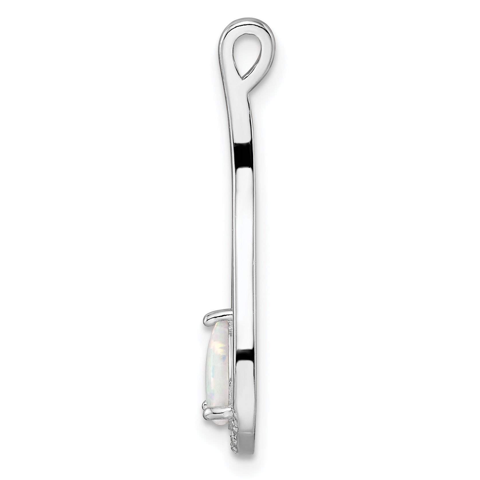 Introducing the Sterling Silver Rhodium-Plated Polished White Created Opal & CZ Pendant. This piece showcases elegance with a lustrous white lab-created opal, set in polished 925 sterling silver. Accentuated by eight sparkling cubic zirconia stones, it captures light beautifully. The rhodium plating enhances its sparkle, promising lasting brilliance. With a teardrop shape opal and round CZ stones, this pendant adds a modern touch to any look. Its refined design fits chains up to 2mm, making it versatile. Ideal for gifting or adding to your own collection, the Sterling Silver Opal & CZ Pendant is a timeless treasure.