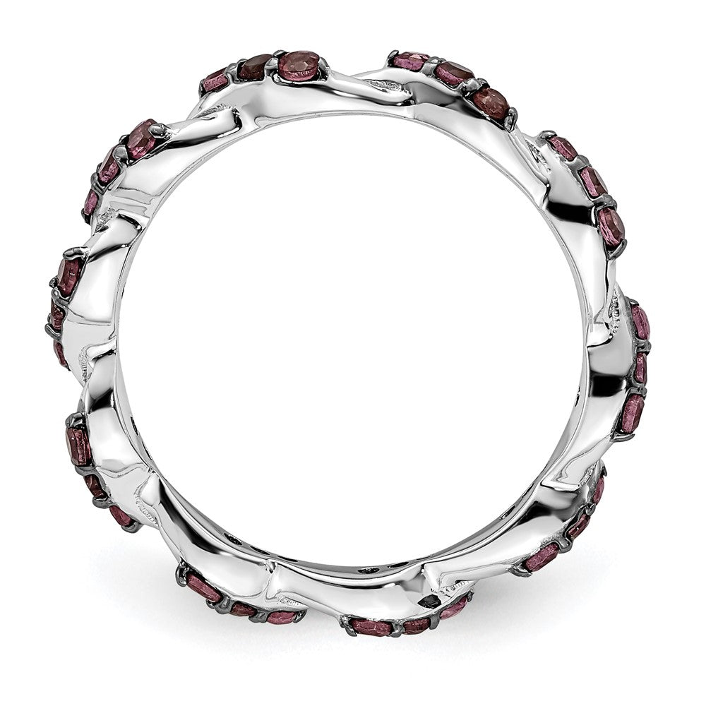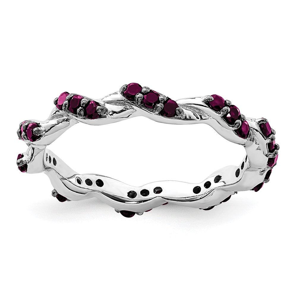 Sterling Silver Rhodium-plated Rhodolite Garnet Twisted Eternity Ring