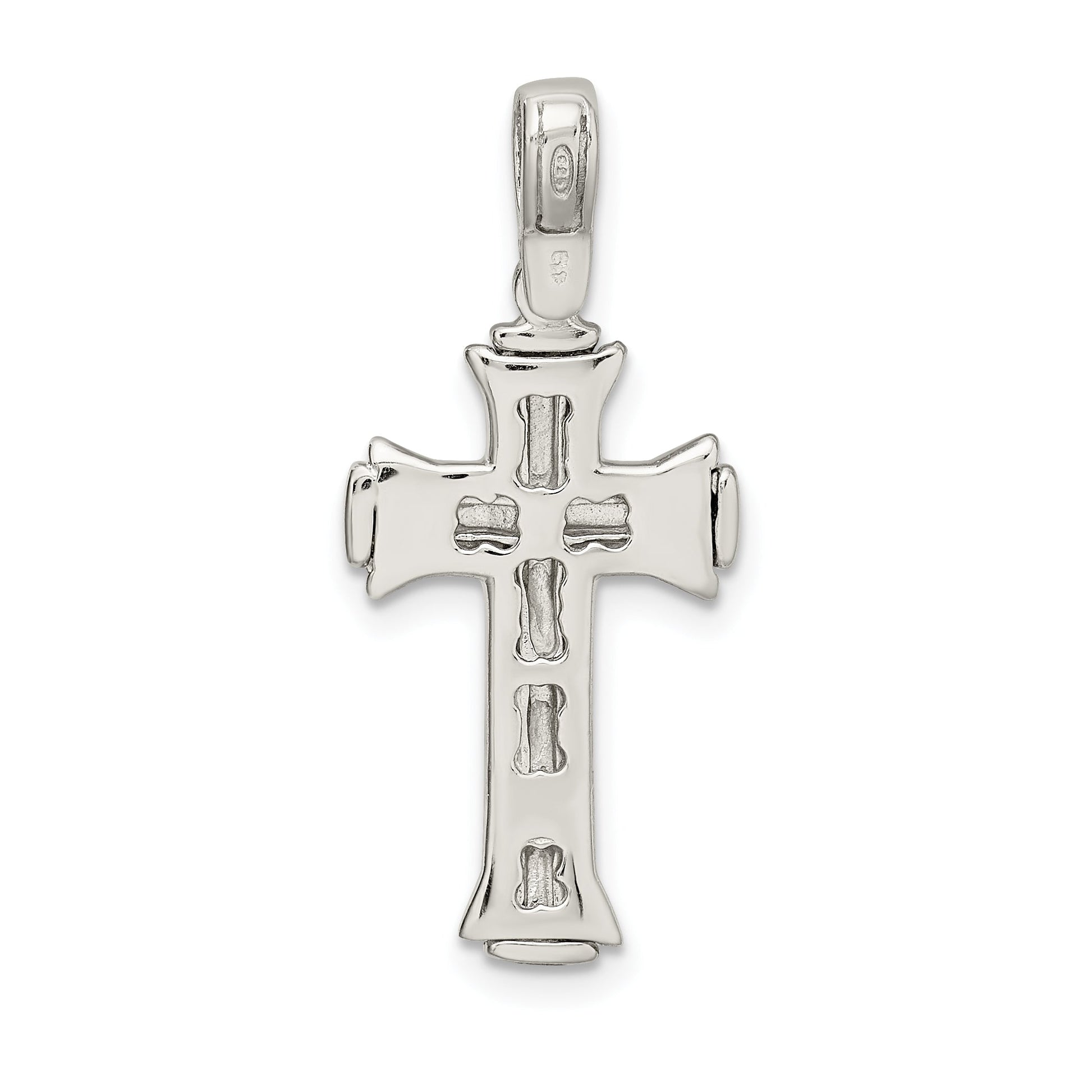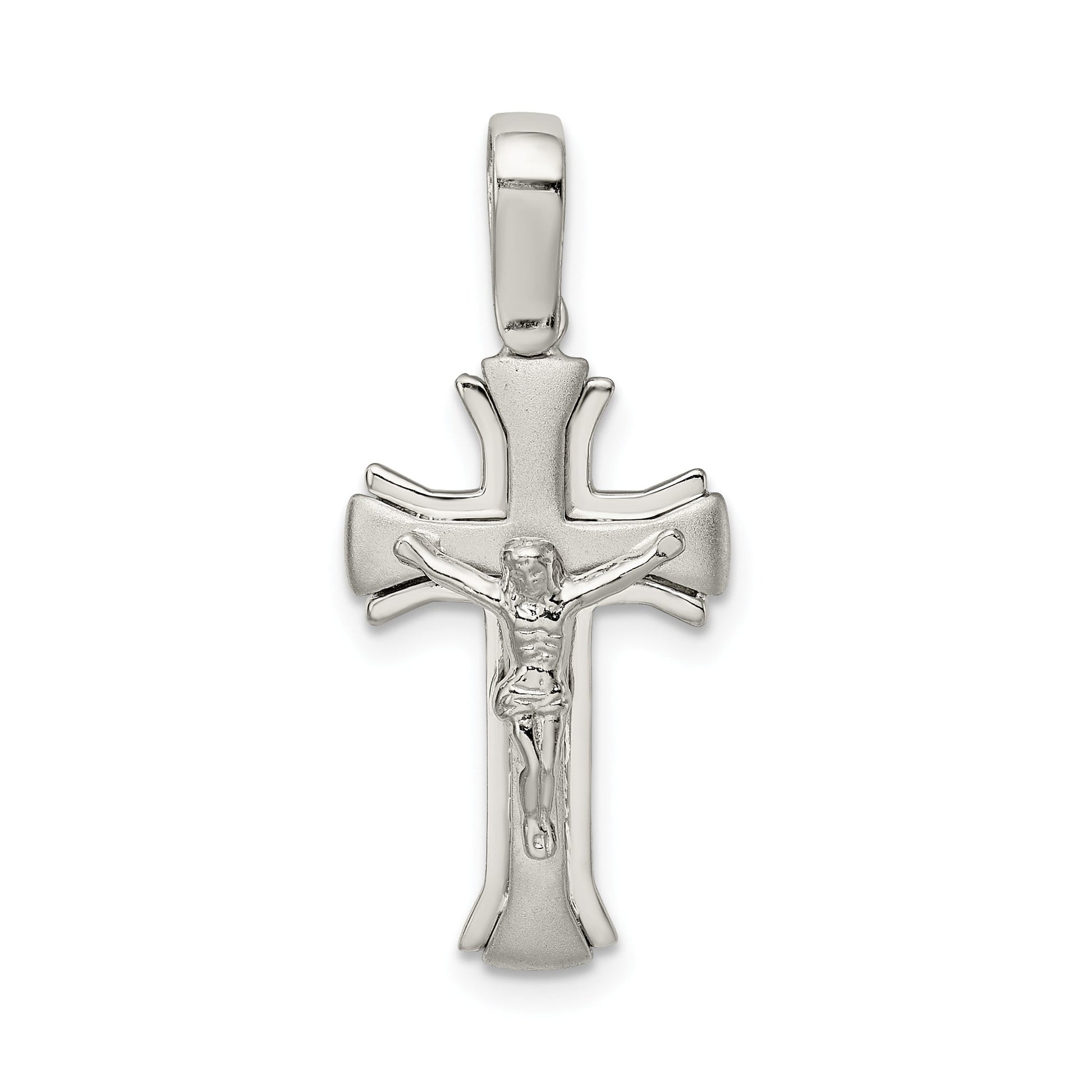 The Sterling Silver Rhodium-Plated Satin & Polished Crucifix Pendant is a stunning piece of jewelry that radiates grace and elegance. Crafted from high-quality 925 sterling silver, it boasts a polished finish that beautifully complements its satin texture. The pendant measures 29 mm in length and displays a striking 3D design, while its rhodium plating offers an enduring silver tone. With a semi-solid structure, the pendant is both refined and robust. Perfect for any occasion, the Sterling Silver Rhodium-Plated Satin & Polished Crucifix Pendant adds a timeless touch to your collection.