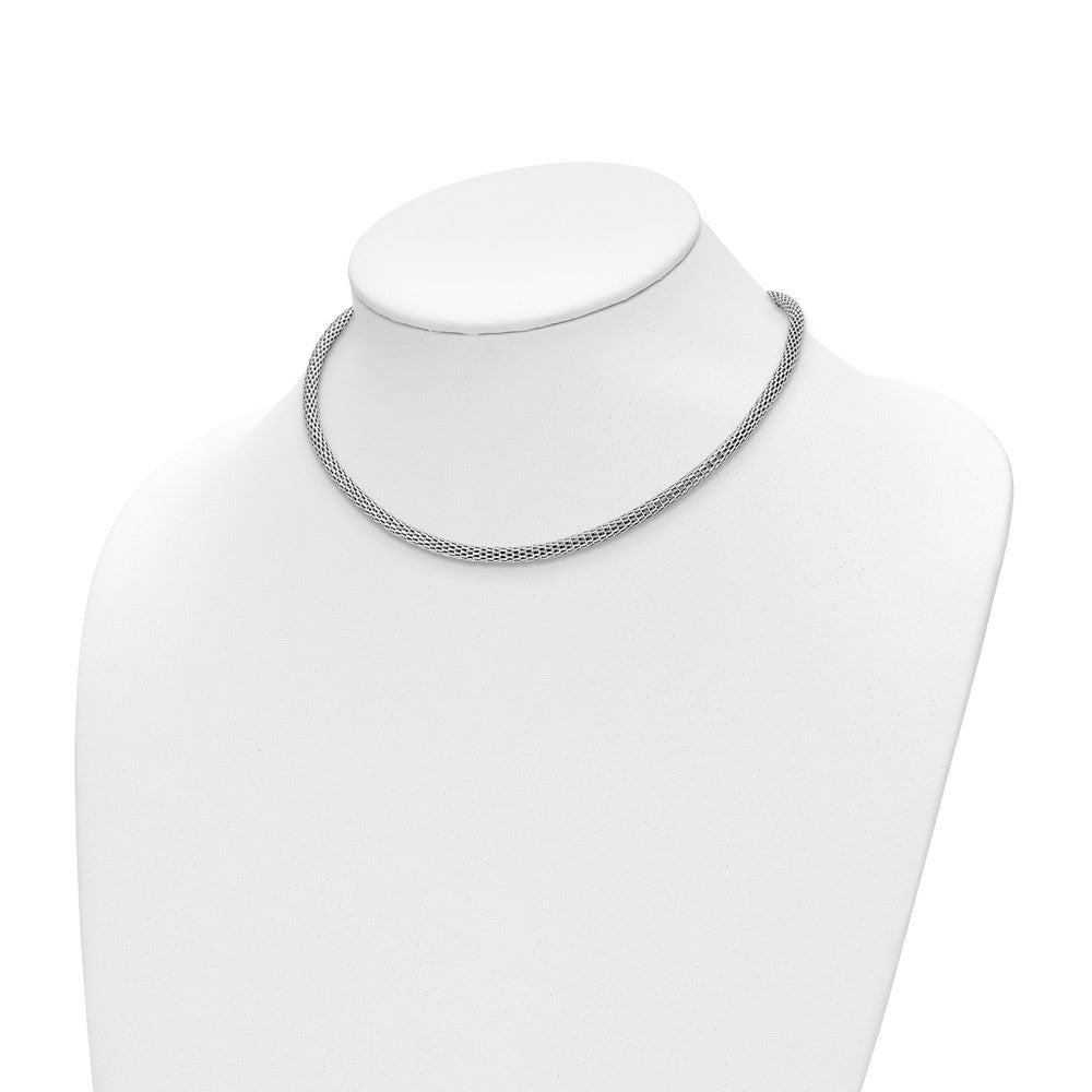 The Sterling Silver Rhodium-Plated W/ 2In Ext Choker Necklace is a sleek piece made for modern women. It features a shiny silver tone finish that adds a chic touch to any outfit. The 17-inch chain has a 3.5 mm width and comes with a lobster clasp for a secure fit. An extra 2-inch extender makes it easy to adjust. Designed with a hollow style, this jewelry piece is both stylish and lightweight. Perfect for everyday wear or special occasions, the Sterling Silver Rhodium-Plated W/ 2In Ext Choker Necklace proves that simplicity can make a bold statement.