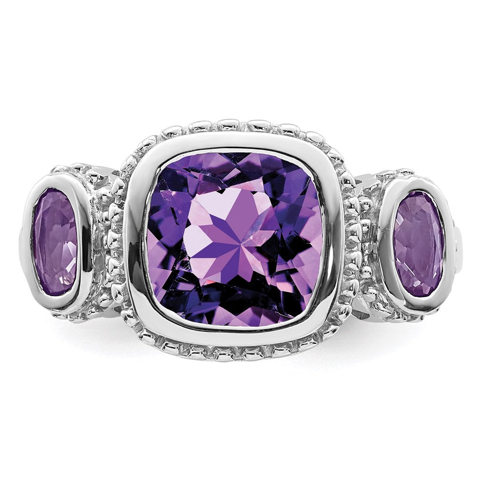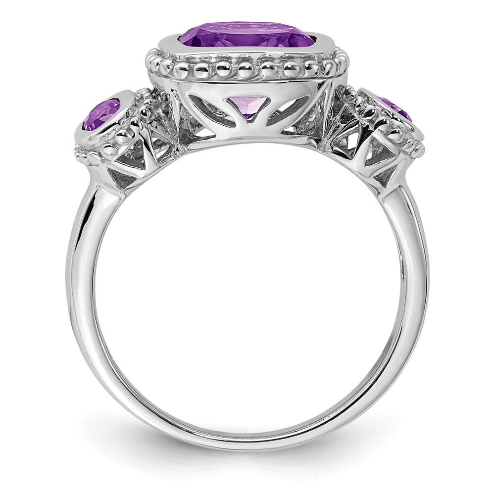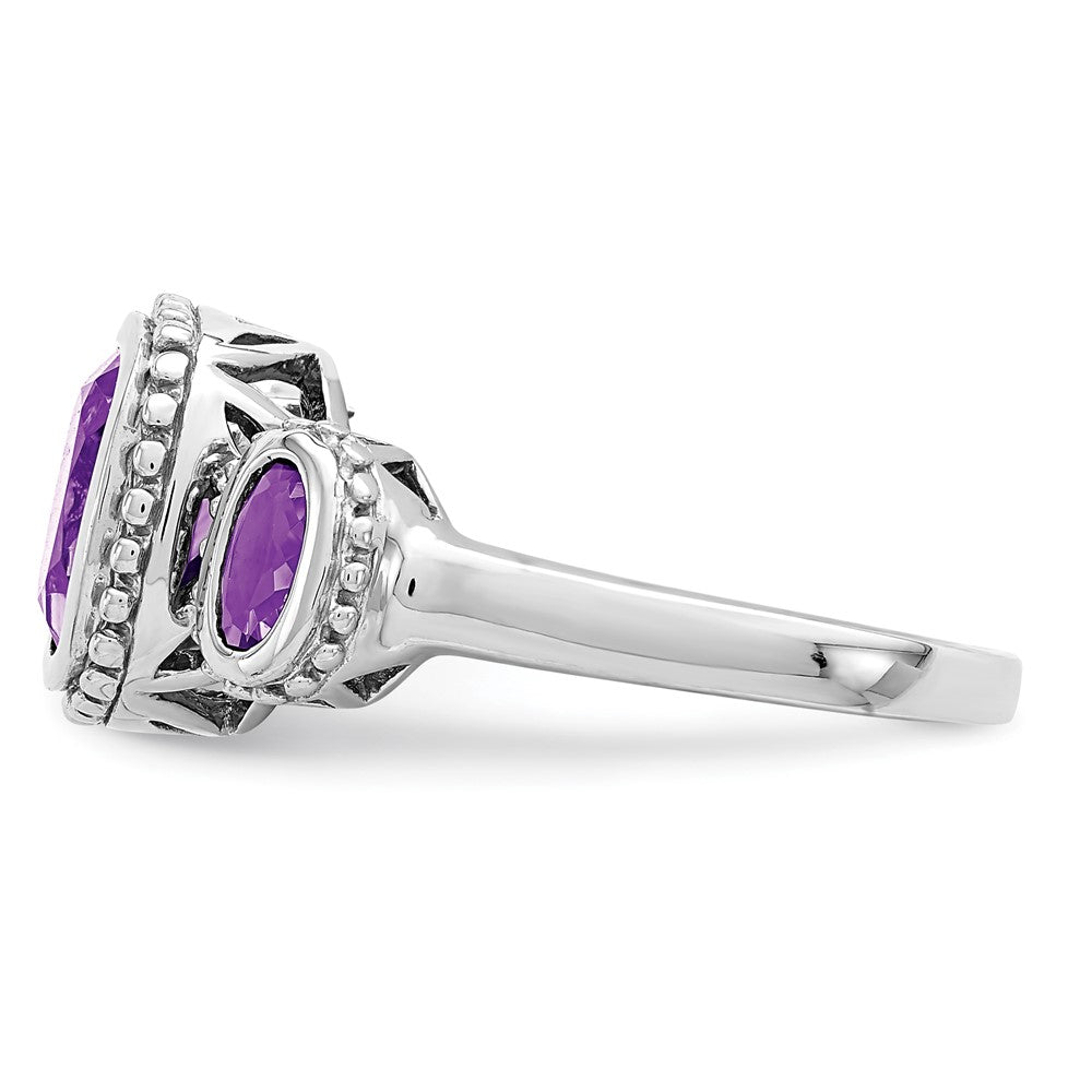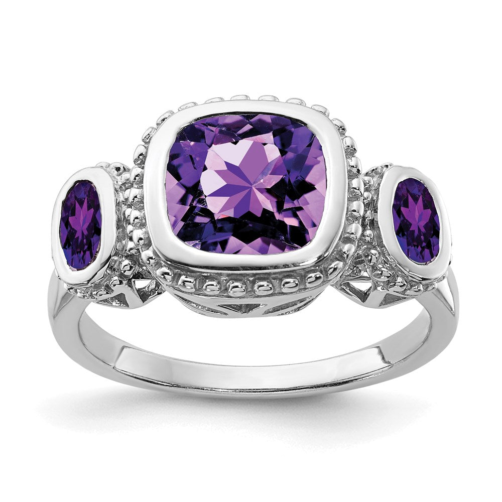 Sterling Silver Rhodium-plated w/Amethyst Ring