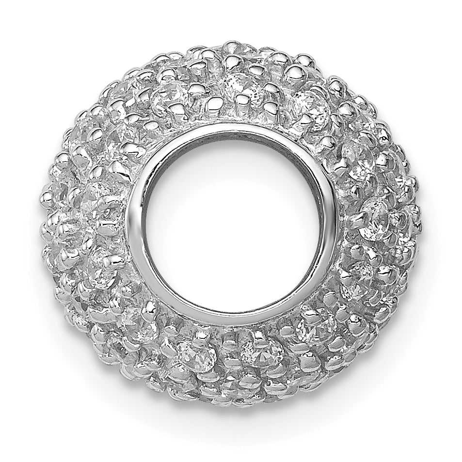 The Sterling Silver Rhodium-Plated Bead Chain Slide Pendant is a chic accessory for any occasion. Made with 925 sterling silver and finished with a polished rhodium plating, it exudes a sleek silver tone. This pendant features sparkling cubic zirconia, which adds a touch of glamor. The synthetic stones shine with a clear brilliance, elevating your style effortlessly. With its crafted solid design, this delightful piece showcases superior artistry. Measuring 12.1 mm, it gracefully complements any outfit. For those who love timeless elegance, the Sterling Silver Rhodium-Plated Bead Chain Slide Pendant is a must-have.