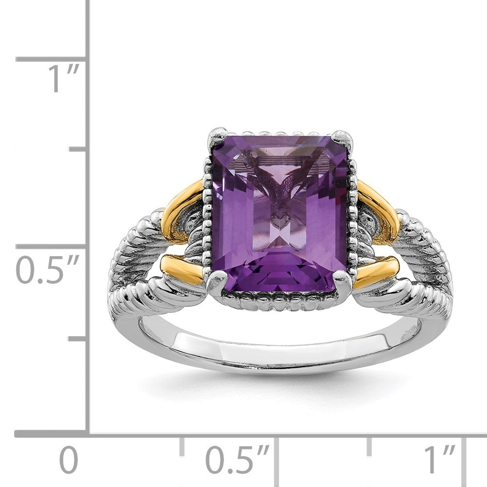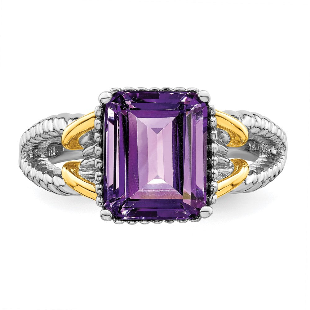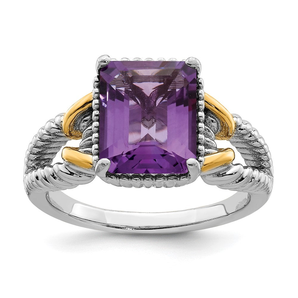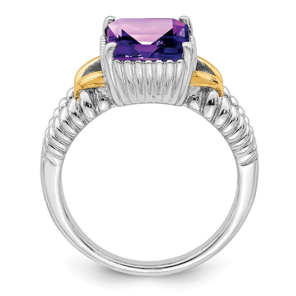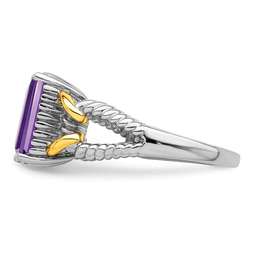 Sterling Silver Rhodium-plated w/ Flash Gold-plate Amethyst Ring