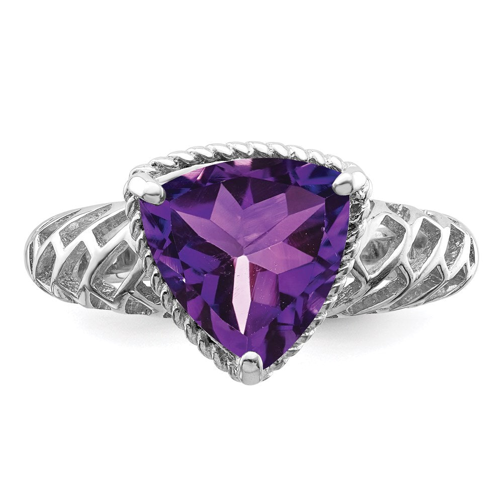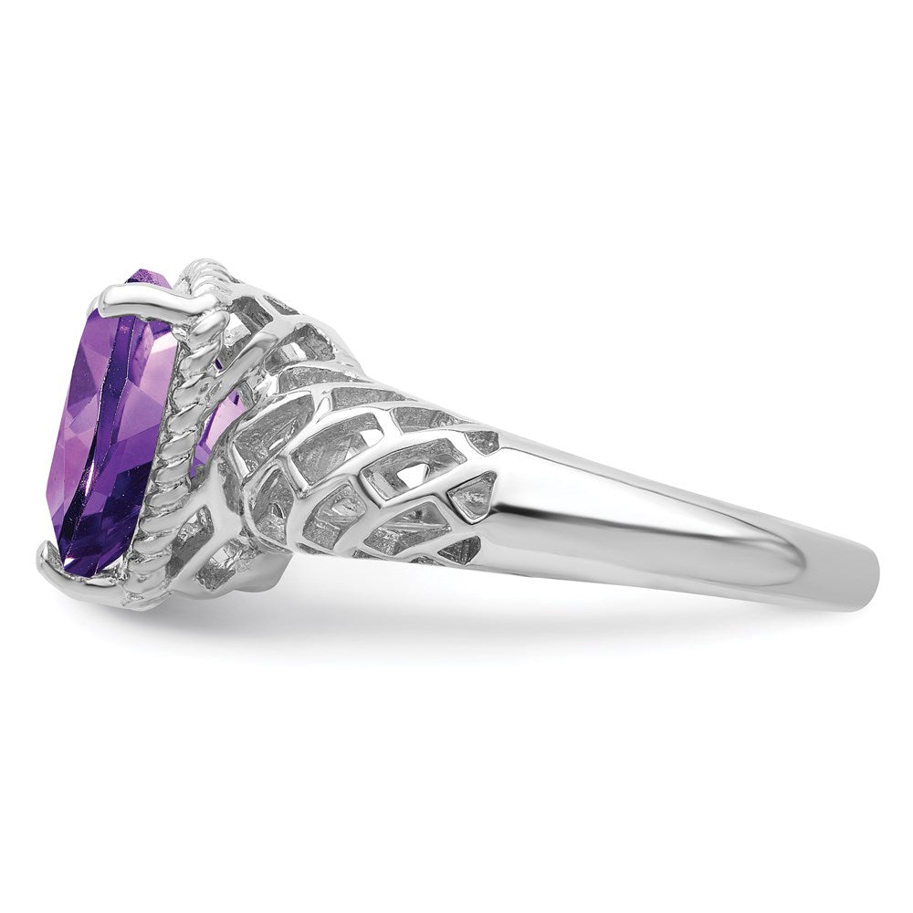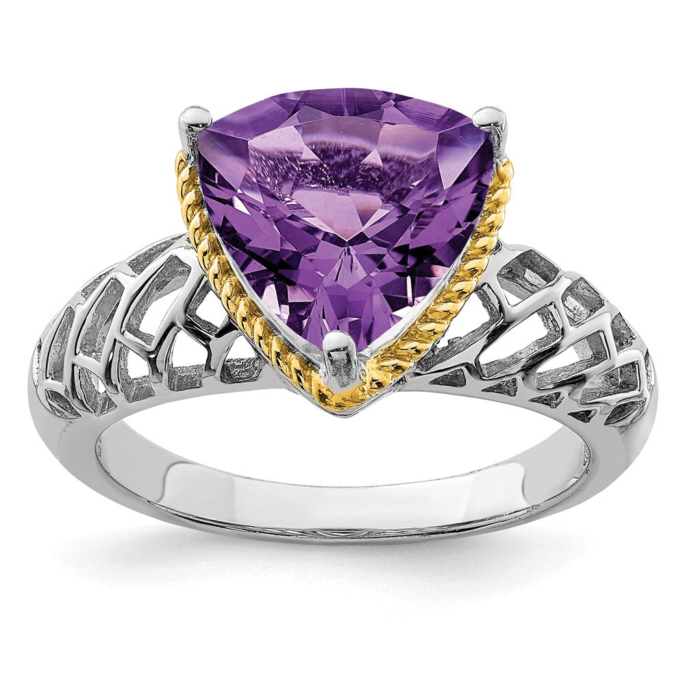 Sterling Silver Rhodium-plated w/ Flash Gold-plate Amethyst Ring