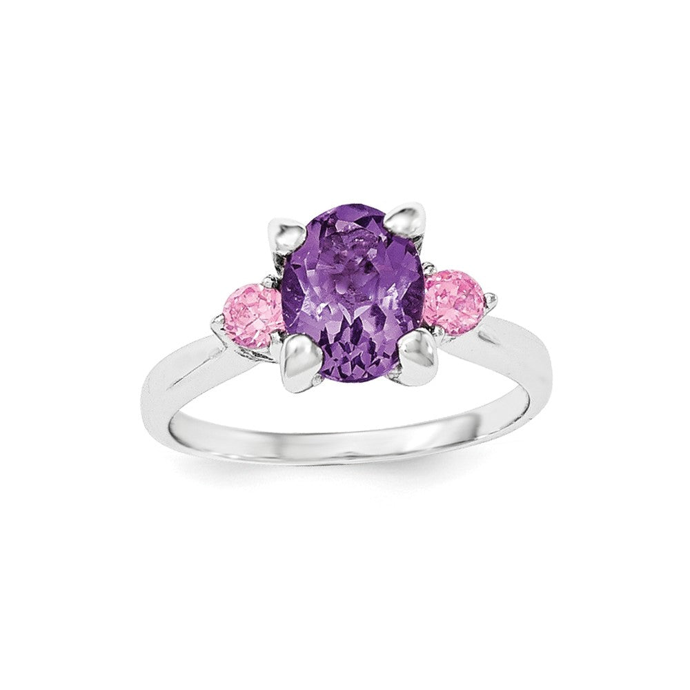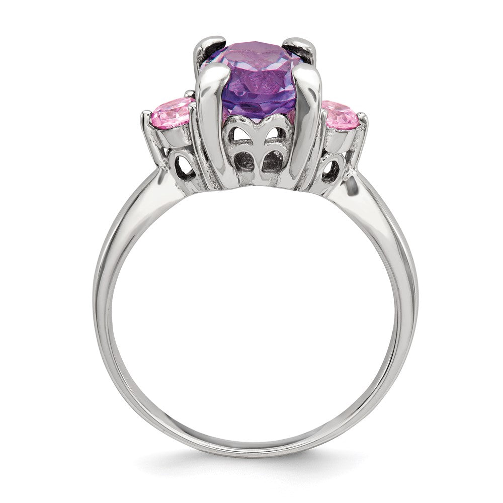 Sterling Silver Rhodium-plated w/Pink CZ and Amethyst Ring