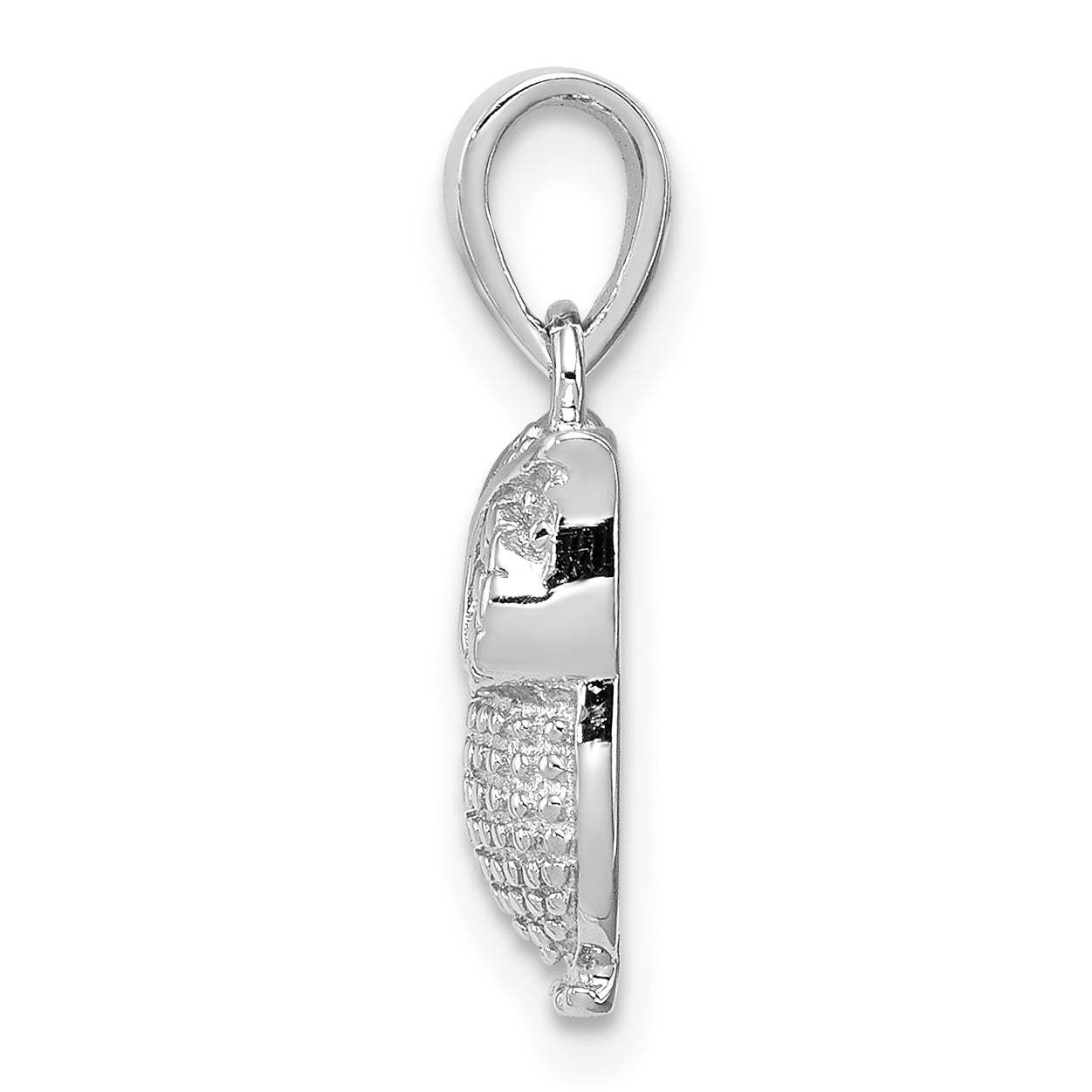 Discover the Sterling Silver Rhodium-Plated Blue Glass Owl Pendant, a dazzling piece that elevates any ensemble. Crafted from 925 sterling silver with a radiant rhodium plating, this pendant comes to life with a striking blue glass stone. The intricate owl design measures 13.25 mm in length and 9 mm in width. It offers a solid feel, thanks to a well-crafted casting process. This themed pendant is perfect for owl enthusiasts or anyone who appreciates unique jewelry. Add a touch of whimsy and elegance to your collection with the Sterling Silver Rhodium-Plated Blue Glass Owl Pendant.