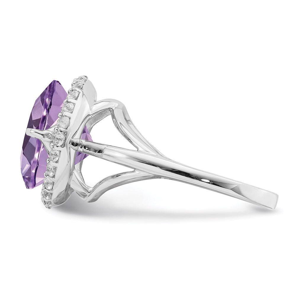 Sterling Silver Rhodium White Topaz u0026 Pink Quartz Ring