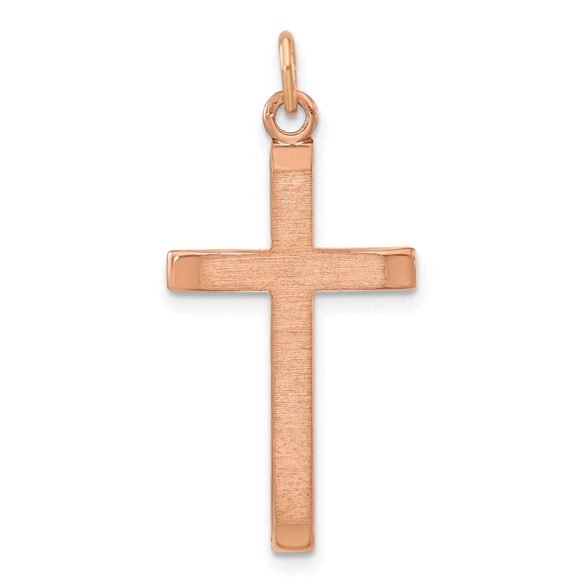 Discover the beauty of our Sterling Silver Rose Gold-Plated Polished and Brushed Tapered Cross Pendant. This elegant piece showcases a masterful blend of polished and brushed finishes, giving it a unique and stylish look. Made from high-quality sterling silver with a purity of 925, this pendant is plated in a stunning rose tone gold, ensuring it stands out. Measuring 28.7 mm in length and 15.33 mm in width, its tapered design adds sophistication to any outfit. Perfect for any occasion, the Sterling Silver Rose Gold-Plated Polished and Brushed Tapered Cross Pendant makes a fabulous gift for the special woman in your life.