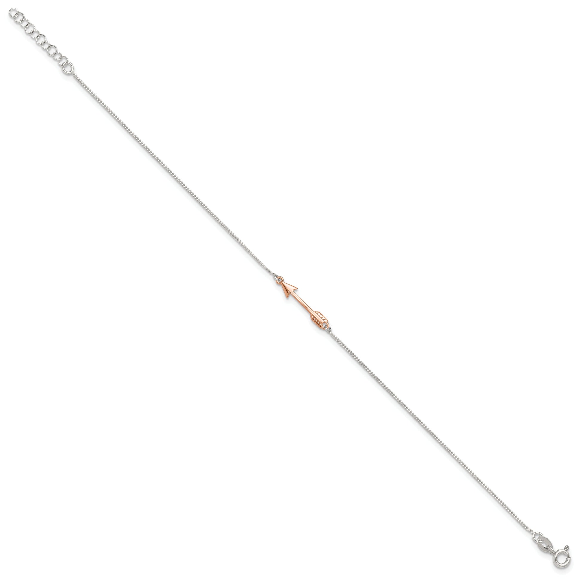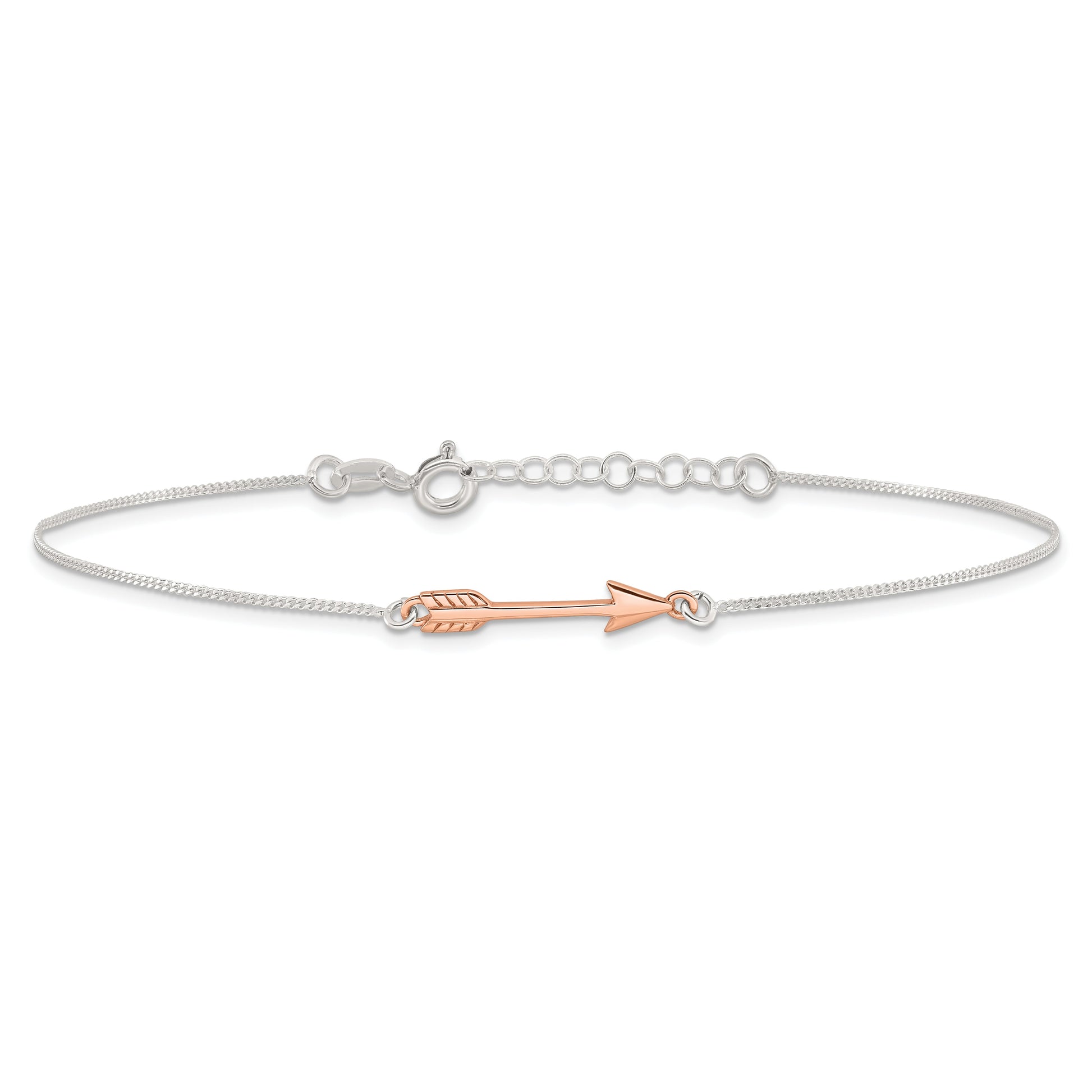 Meet the Sterling Silver Rose-Tone Polished Arrow Anklet, an enchanting accessory designed with elegance in mind. Crafted from 925 sterling silver, this anklet boasts a polished finish that adds a subtle shine. Its 9-inch length, with a handy 1-inch extender, ensures a snug fit for most. The curb chain, measuring just 1mm in width, is delicate yet striking, perfect for accentuating any outfit. With adjustable features and a spring ring clasp, it's both functional and stylish. Perfect for any occasion, the Sterling Silver Rose-Tone Polished Arrow Anklet is a must-have in your jewelry collection.