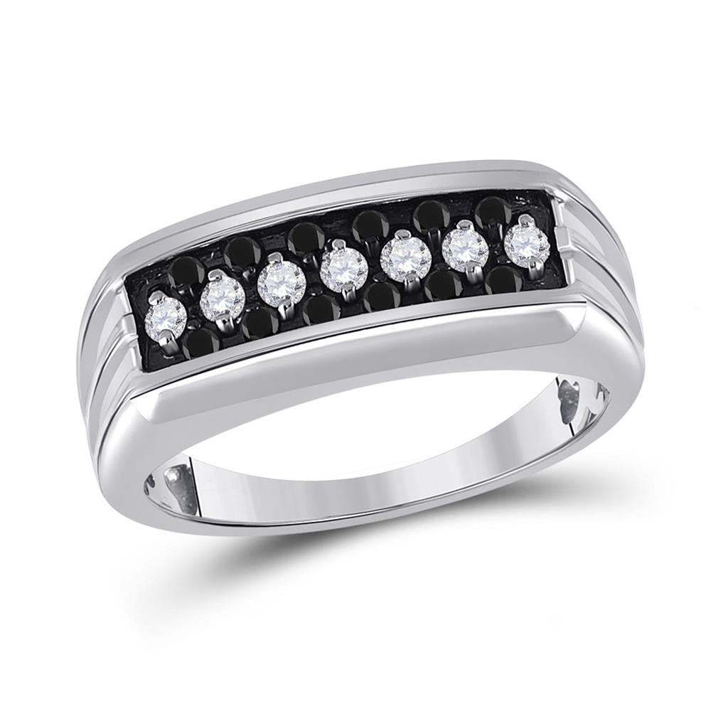 Sterling Silver Round Black Diamond Band Ring 1/2 Cttw