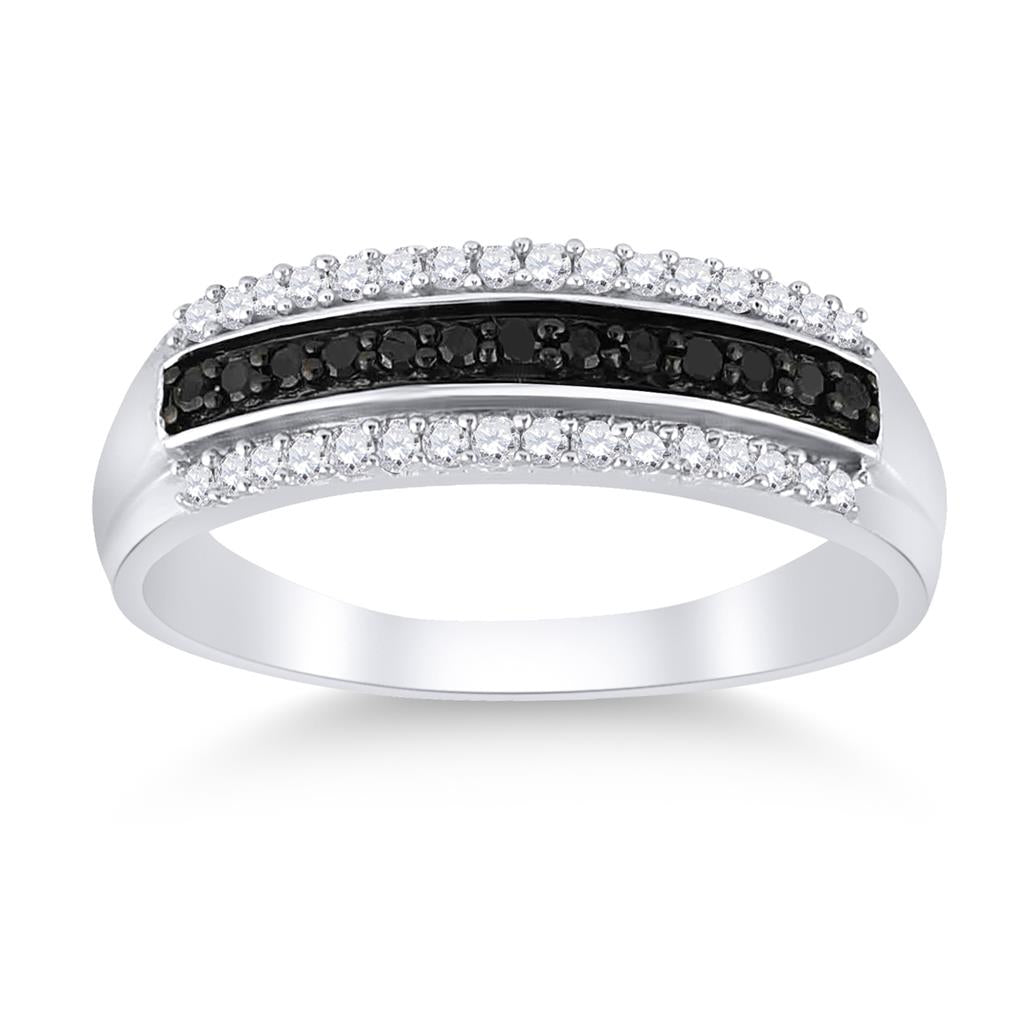 Sterling Silver Round Black Diamond Band Ring 1/4 Cttw