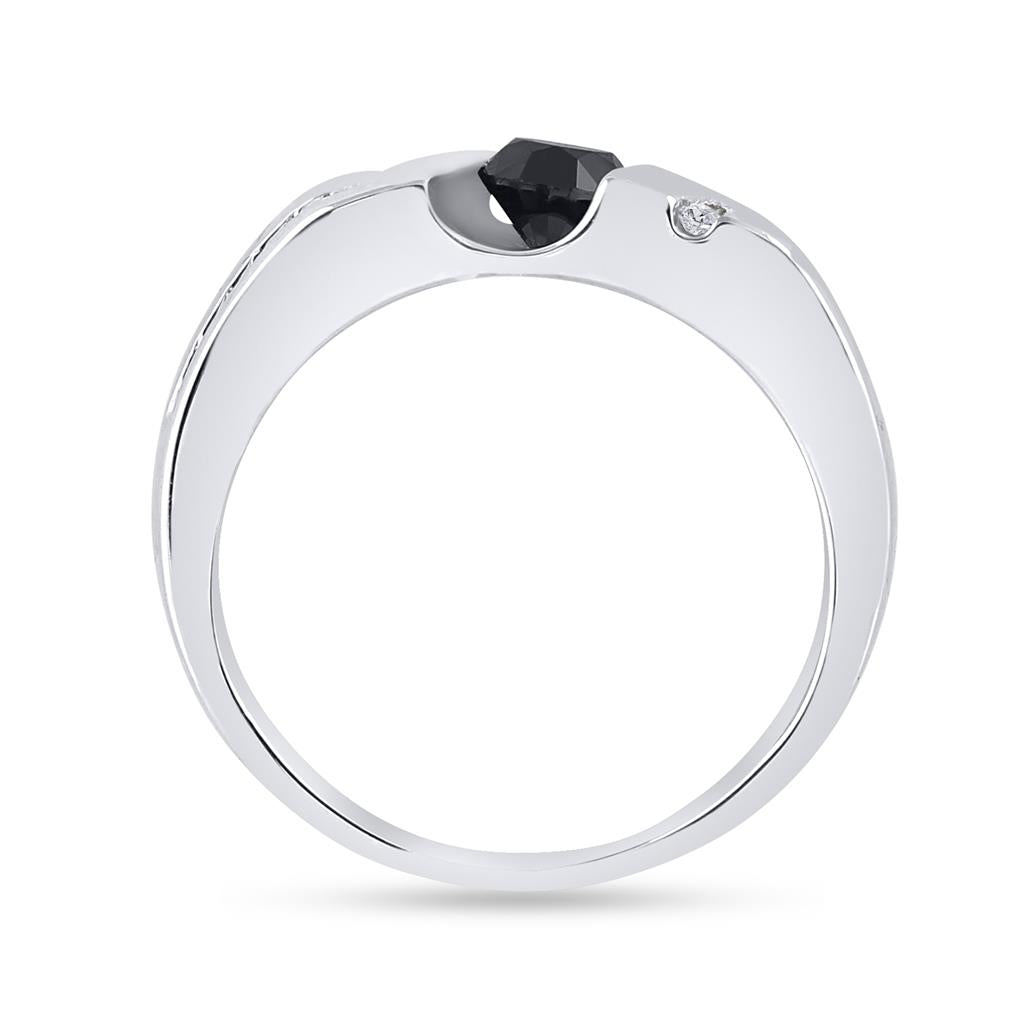 Sterling Silver Round Black Diamond Solitaire Wedding Band Ring 1 Cttw
