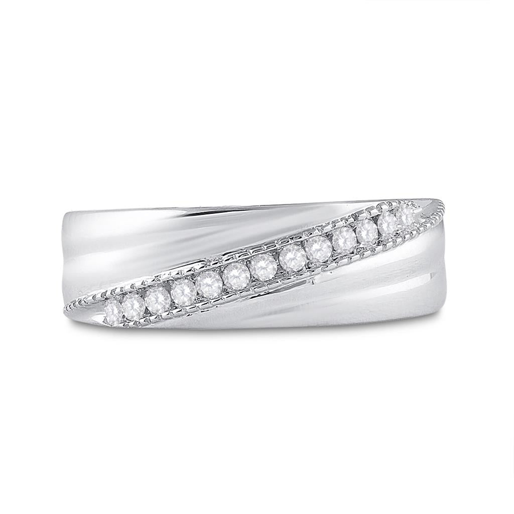 Sterling Silver Round Diamond Wedding Diagonal Row Band Ring 1/5 Cttw
