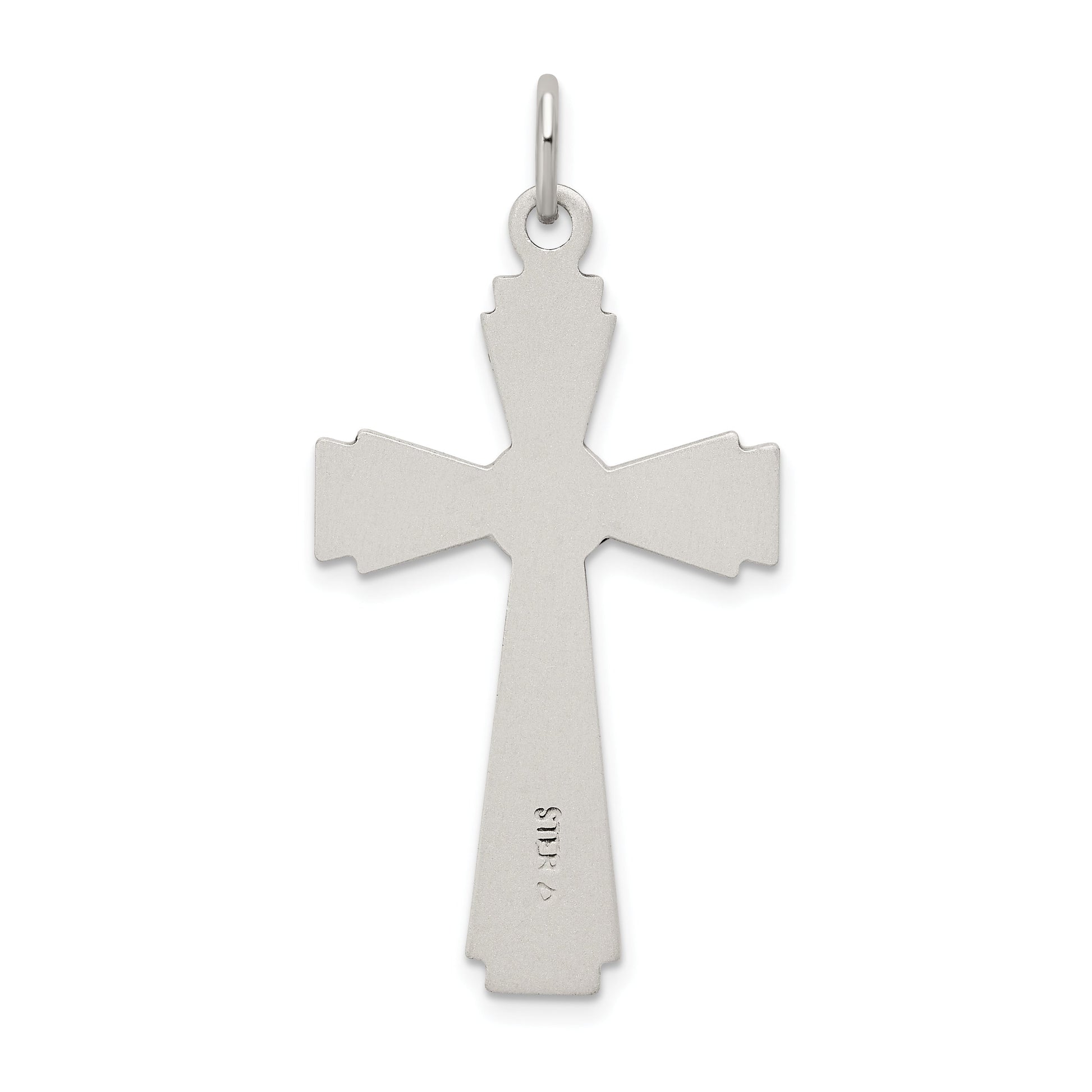 The Sterling Silver Satin and Diamond-Cut INRI Crucifix Pendant embodies grace and elegance. Crafted from 925 sterling silver, this polished pendant showcases a sophisticated mix of satin and diamond-cut textures. Its sleek, 3D design features precise dimension details, with a 42.5 mm length and 36 mm charm length that draws attention. A lacquer coating adds a refined touch and enhances durability. Designed through die-struck manufacturing, the pendant delivers quality and visual appeal. Whether a meaningful gift or a personal treasure, this stern silver beauty gracefully adorns any neckline. Elevate your style with the Sterling Silver Satin and Diamond-Cut INRI Crucifix Pendant.