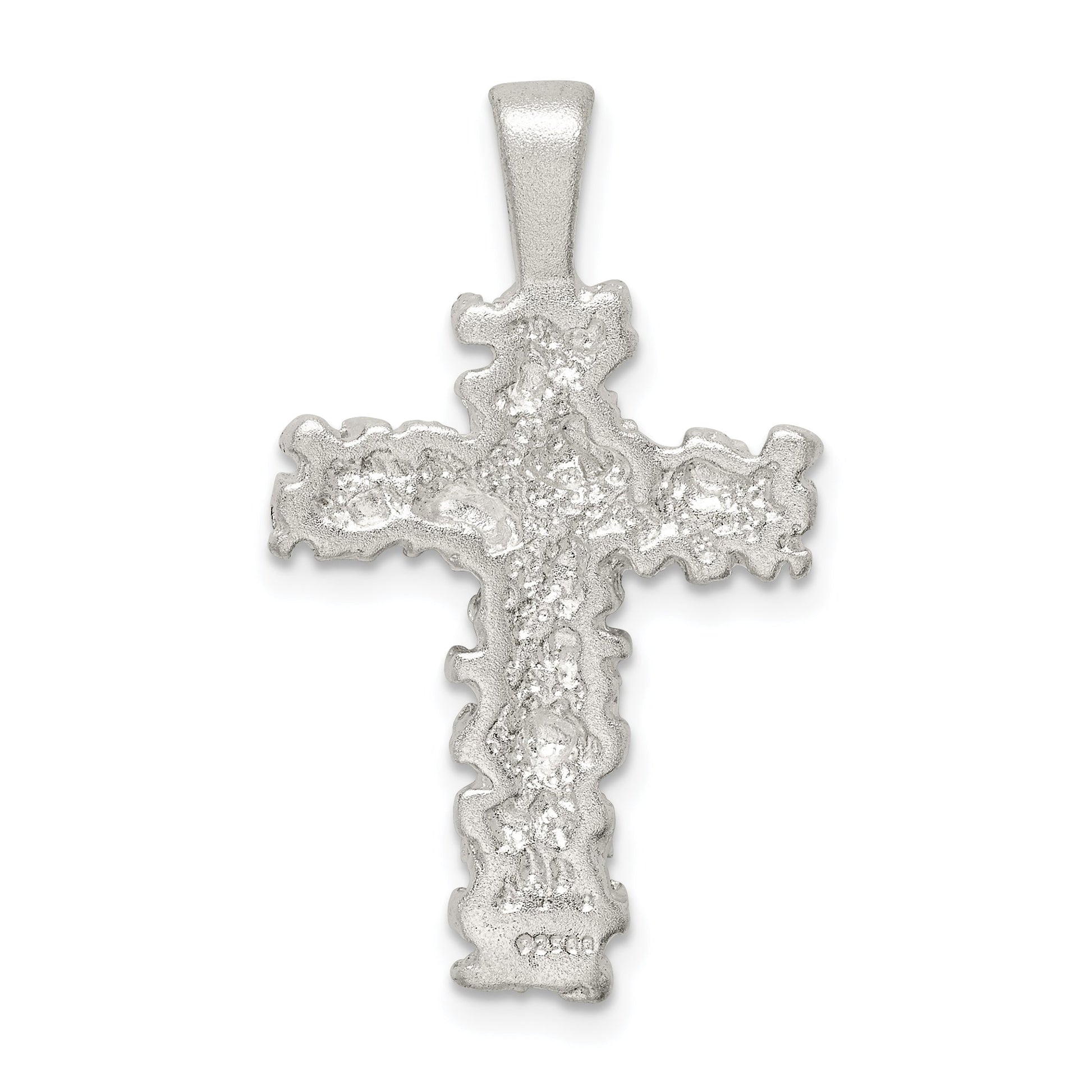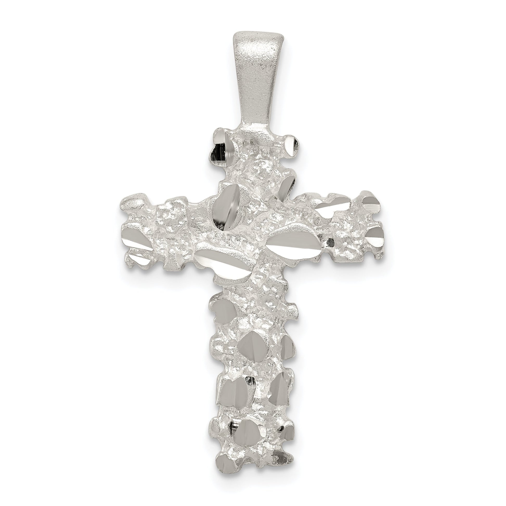 The Sterling Silver Satin Finish Diamond-Cut Cross Pendant is a timeless piece that adds elegance to any outfit. Crafted from high-quality 925 sterling silver, this pendant features an anti-tarnish coating to maintain its lustrous shine. The intricate diamond-cut design and satin finish give it a unique sparkle that catches the eye. Measuring 23.35 mm in length and 18.74 mm in width, its solid, casted form ensures durability while maintaining a lightweight feel. Perfect for personal wear or as a heartfelt gift, the Sterling Silver Satin Finish Diamond-Cut Cross Pendant combines classic style with modern craftsmanship.
