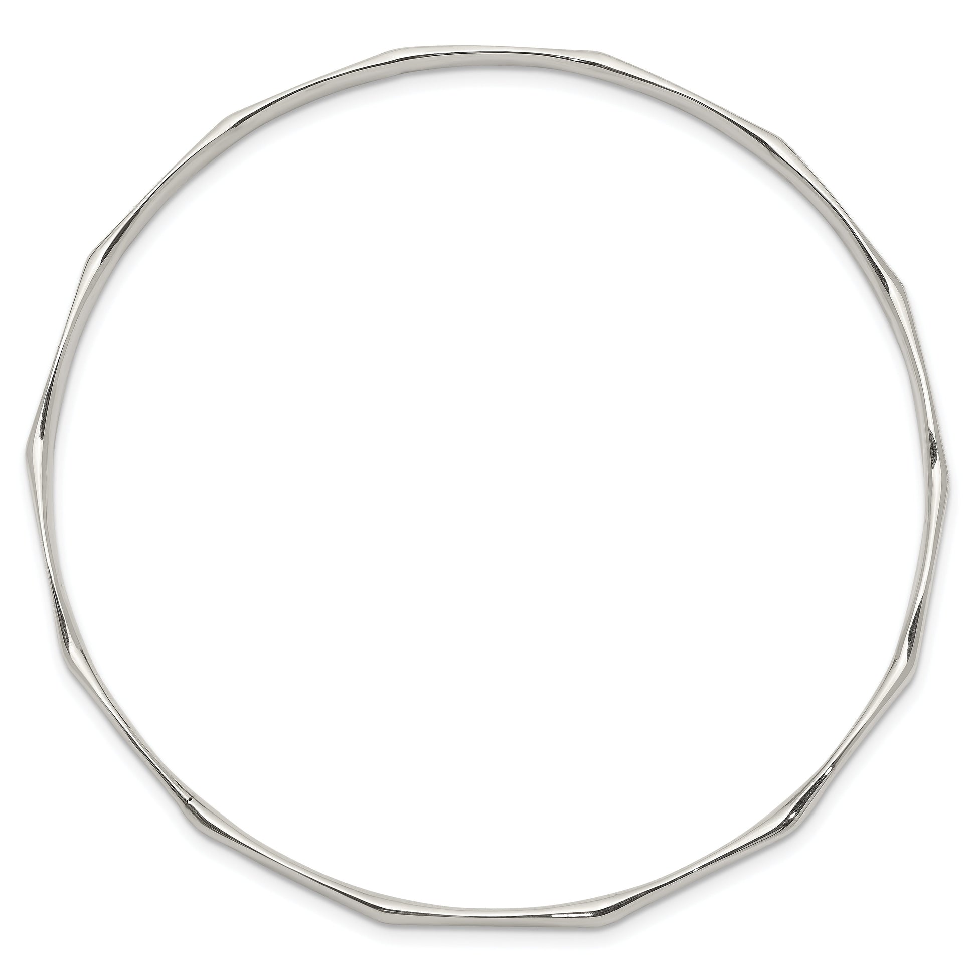 The Sterling Silver Scalloped Slip-On Bangle is a stunning addition to any jewelry collection. Crafted from 925 sterling silver, this polished bangle gleams with brilliance. Its sleek slip-on design ensures easy wear without the fuss of a clasp, making it perfect for busy days. With its scalloped edges, the bangle adds a touch of elegance, capturing attention with its timeless charm. Ideal for women who appreciate refined style, this Sterling Silver Scalloped Slip-On Bangle complements any outfit with its classic white shine.