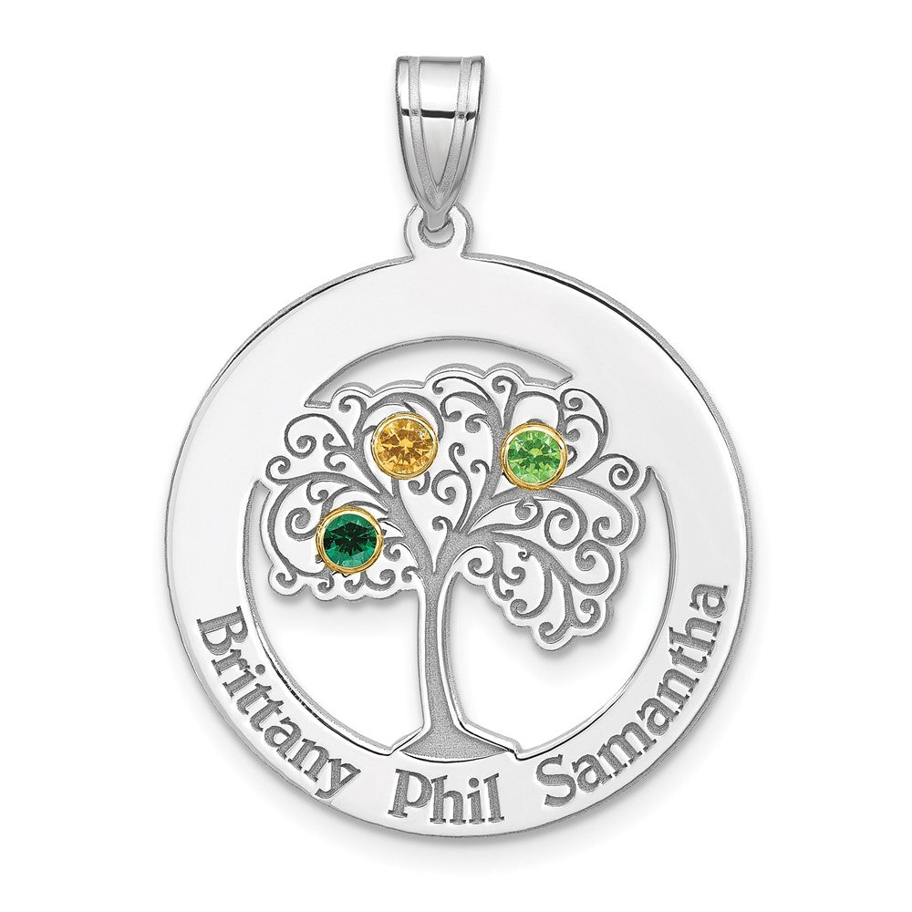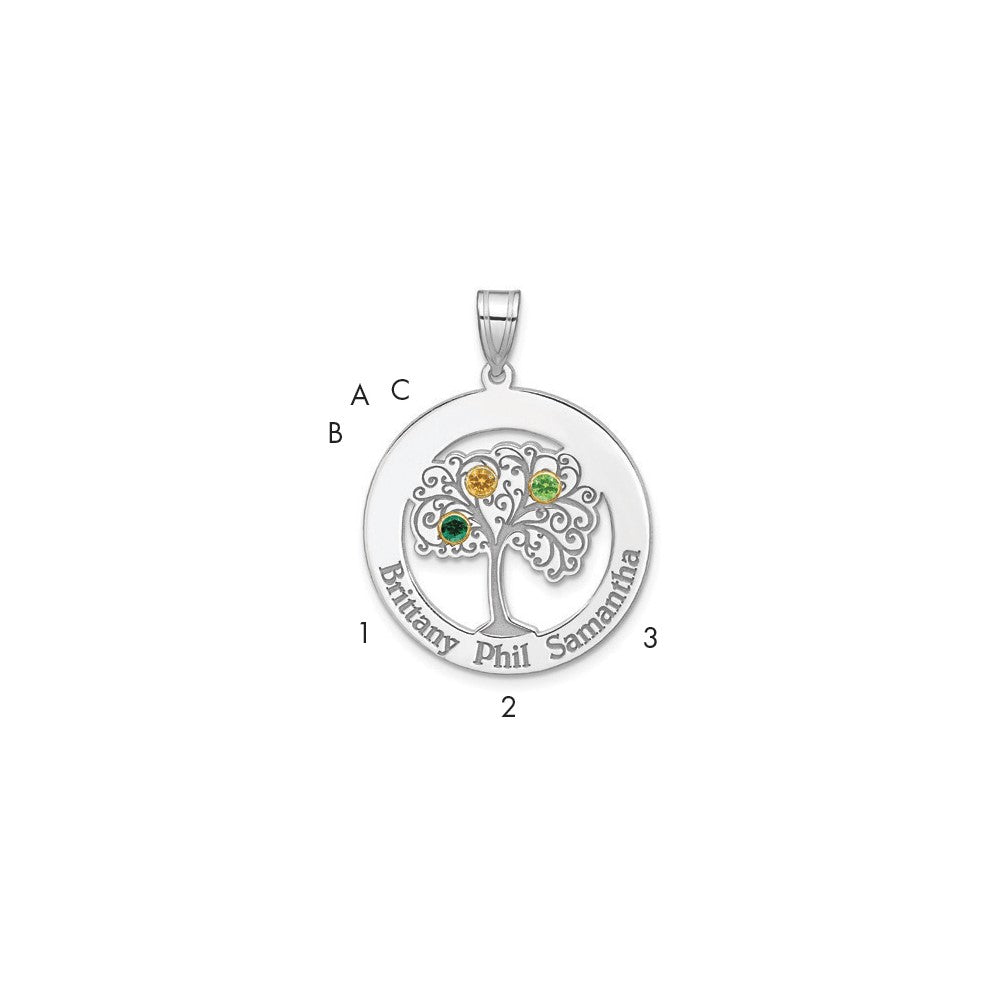 Celebrate your family's unique bond with the Sterling Silver Silver/Rhod-Plated 3 Birthstone With 14K Bezel Family Pendant. Crafted from pure 925 sterling silver and embellished with brilliant rhodium plating, this piece offers a dazzling silver tone that stands out. Measuring 29mm in length and 25mm in width, the pendant features three customizable birthstones, held securely in 14K bezels, adding a personal touch to match each family member's birthstone. This family-themed jewelry captures cherished relationships in an elegant design, making it a meaningful gift or a treasured addition to your collection. Wear it close to your heart with pride.