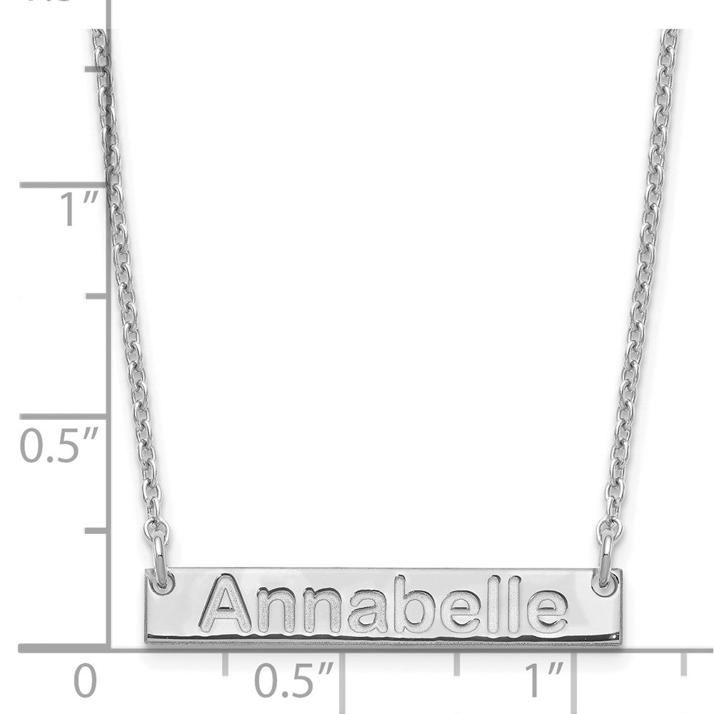 The Sterling Silver Silver/Rhod-Plated Small Arial Rounded Bar Necklace is a sleek piece of jewelry perfect for everyday wear. Crafted from high-quality 925 sterling silver with a polished finish, it offers a shiny look. The 18-inch cable chain is durable and easy to wear, with a secure lobster clasp. Its small, rounded bar pendant measures 4.2 mm by 25.5 mm, making it subtle yet stylish. This necklace can be engraved on both sides, adding a personal touch. The Sterling Silver Silver/Rhod-Plated Small Arial Rounded Bar Necklace is a simple, elegant piece for women who love a custom look.