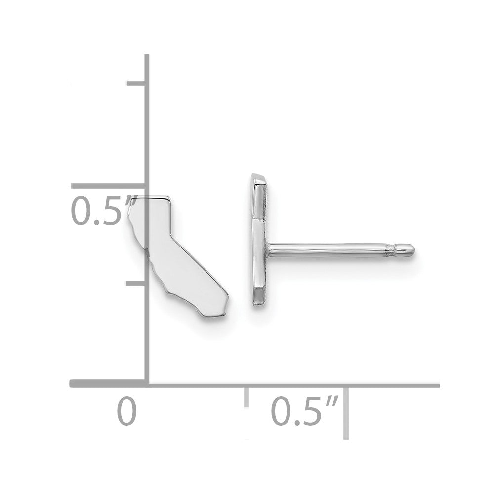 Discover the Sterling Silver California State Earrings, a charming addition for any jewelry lover. Crafted from high-quality 925 sterling silver and finished with a sleek rhodium plating, these earrings shine with a polished look. Measuring just 7.77 mm long and 6.68 mm wide, they sit comfortably and suit everyday wear. The button style with a post and push-back ensures a secure fit. Representing the California spirit, these small, elegant earrings make a great statement or gift. The Sterling Silver California State Earrings blend style and quality effortlessly, perfect for women who love unique jewelry with a hometown touch.