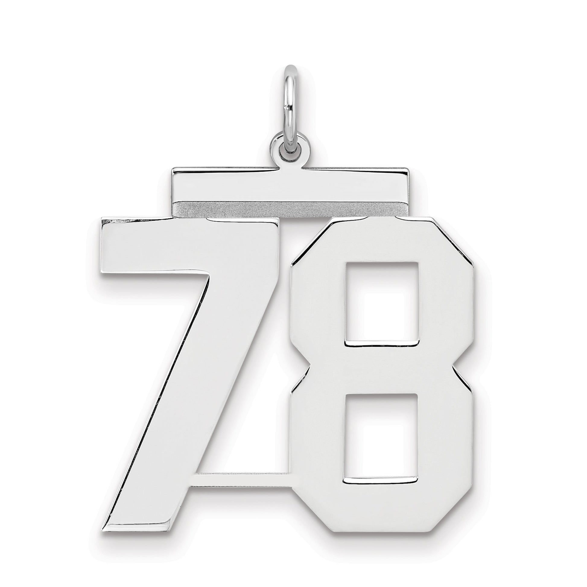 Discover the charm of the Sterling Silver Silver/Rhodium-Plated Polished Number 78 Charm. Crafted from 925 sterling silver, it shines with a rhodium-plated finish. This piece measures 24 mm in length and 20 mm in width, offering a bold presence. Its silver tone adds a touch of elegance, making it a standout accessory for pendants and charms enthusiasts. Perfect for personalizing your jewelry collection or for gifting to someone who values unique touches. Make a statement with the Sterling Silver Silver/Rhodium-Plated Polished Number 78 Charm today.