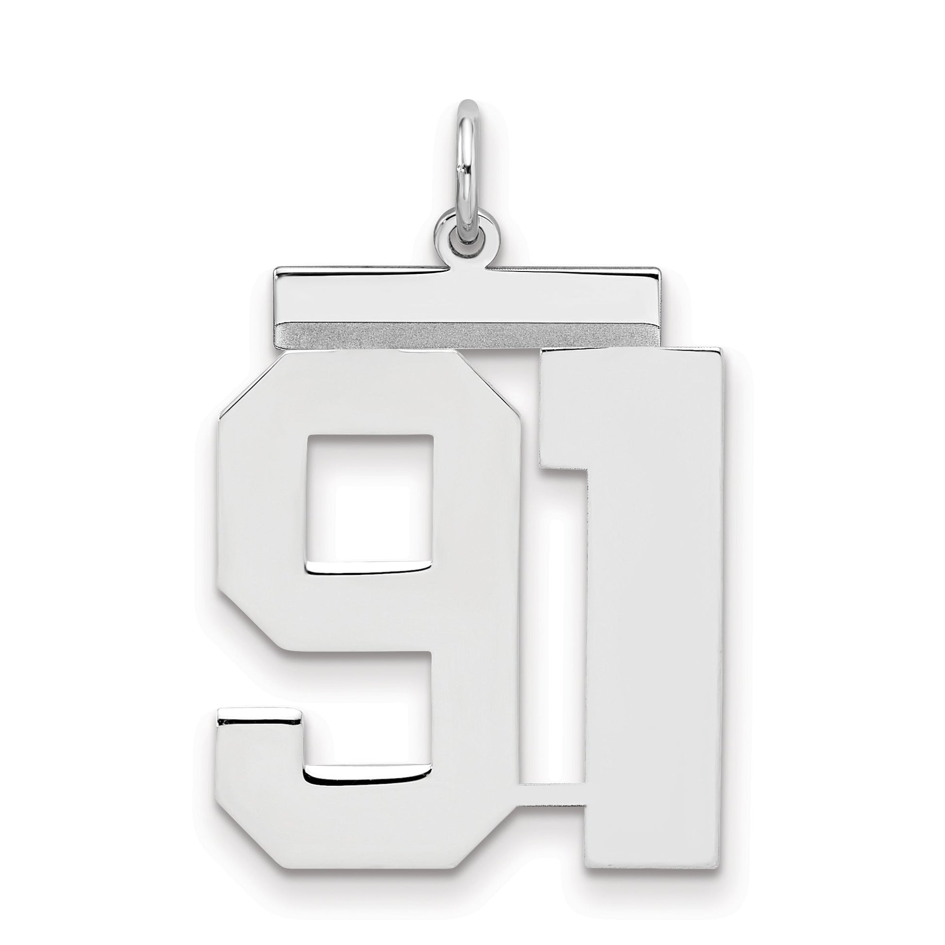 Introduce some luck to your accessory game with the Sterling Silver Silver/Rhodium-Plated Polished Number 91 Charm. Crafted from high-quality 925 sterling silver, this charm features a sleek rhodium-plated finish that adds extra shine while resisting tarnish. Measuring 24 mm in length and 20 mm in width, it's a noticeable piece perfect for those who love bold accessories. The polished surface provides a clean and sophisticated look, reflecting light beautifully. Whether adding to a bracelet or wearing as a pendant, the Sterling Silver Silver/Rhodium-Plated Polished Number 91 Charm makes a stylish statement.
