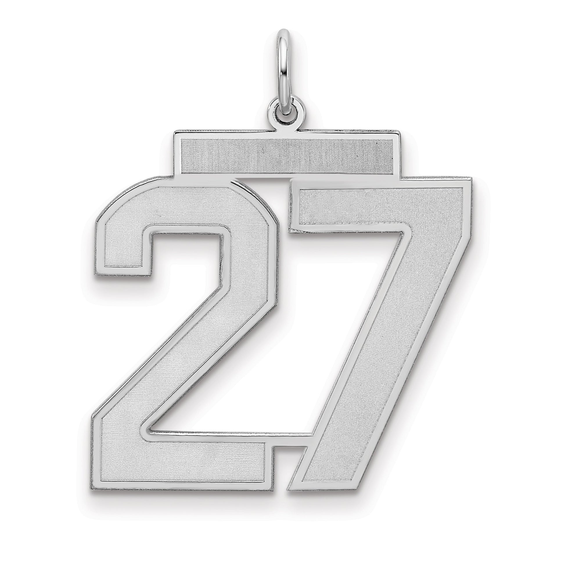 Introducing the Sterling Silver Silver/Rhodium-Plated Satin Number 27 Charm, a stunning jewelry piece that perfectly blends elegance and style. Crafted from 925 sterling silver, this charm boasts a polished finish with a laser design that highlights its sleek look. The charm measures 25 mm in length and 21 mm in width, making it a bold statement piece. Its rhodium plating ensures durability and a long-lasting shine. Ideal for adding a personal touch, the Number 27 charms speak volumes. Capture attention and embody sophistication with the Sterling Silver Silver/Rhodium-Plated Satin Number 27 Charm.