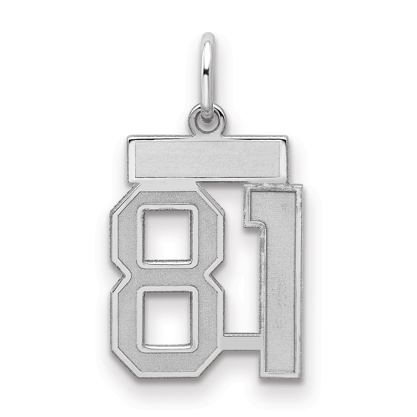 The Sterling Silver Rhodium-Plated Satin Number 81 Charm is a standout piece of fine jewelry. Crafted from high-quality 925 sterling silver, this charm boasts a polished and laser design that gleams elegantly. Its rhodium plating adds a touch of class and enhances its durability. Measuring 19mm in length and 14mm in width, this small charm is your go-to accessory for any ensemble. With its chic silver tone, it offers both style and versatility. The Sterling Silver Rhodium-Plated Satin Number 81 Charm is perfect for those who love understated yet distinctive pieces.