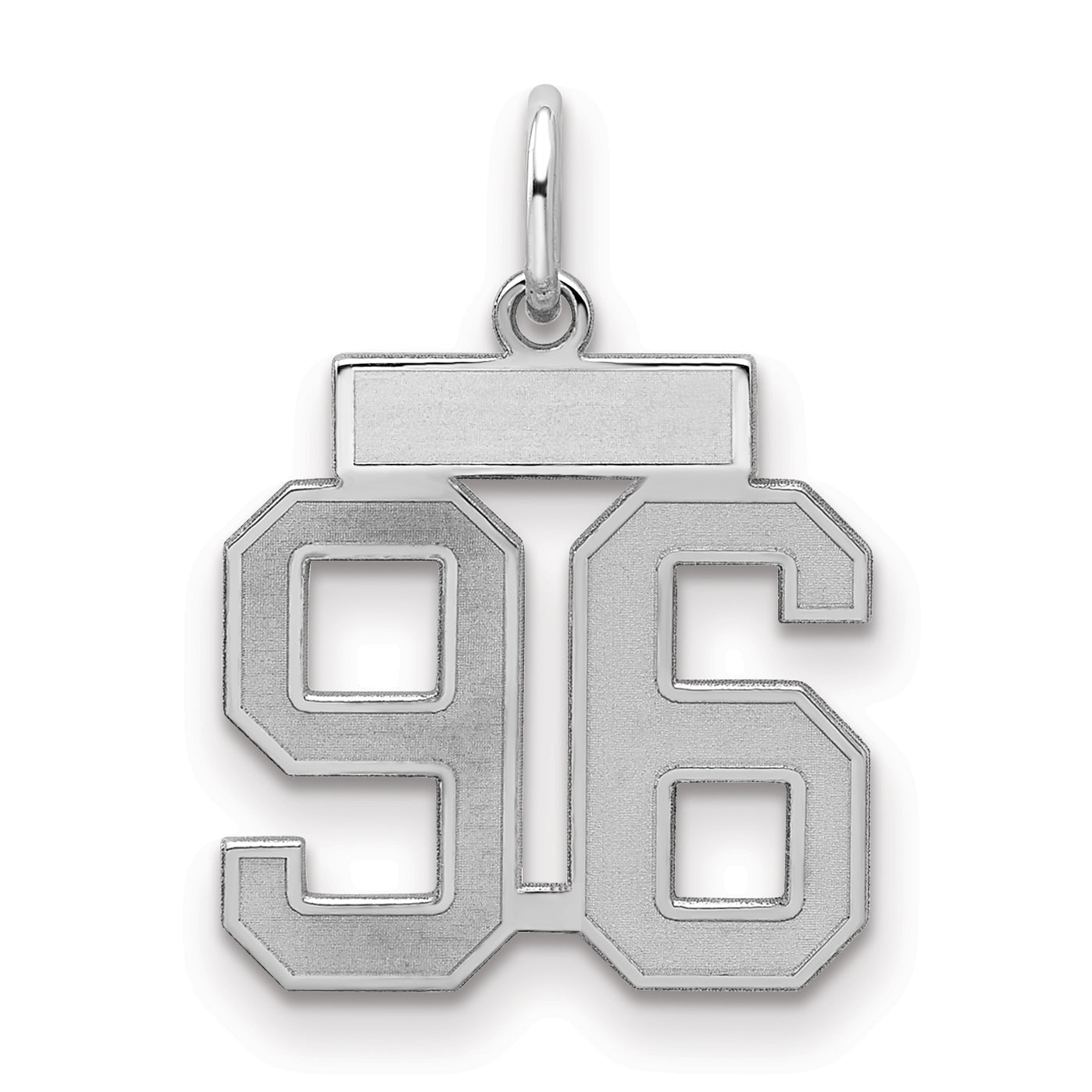 The Sterling Silver Silver/Rhodium-Plated Satin Number 96 Charm is your perfect companion for any occasion. This elegant piece features 925 sterling silver adorned with a radiant rhodium finish, ensuring a lasting shine. Its polished and laser design adds a touch of modern style, making it a striking accessory. With a length of 19 mm and a width of 14 mm, this small yet powerful charm stands out subtly. Add the Sterling Silver Silver/Rhodium-Plated Satin Number 96 Charm to your jewelry collection and enjoy its timeless beauty.