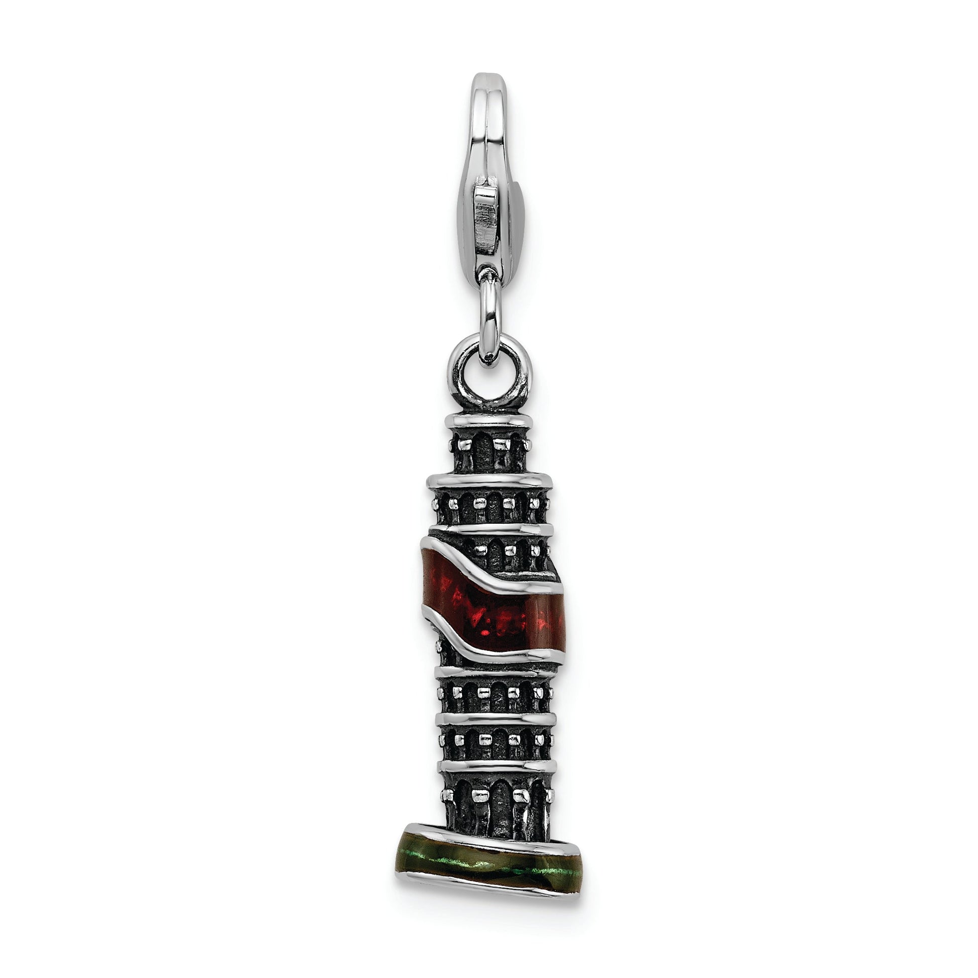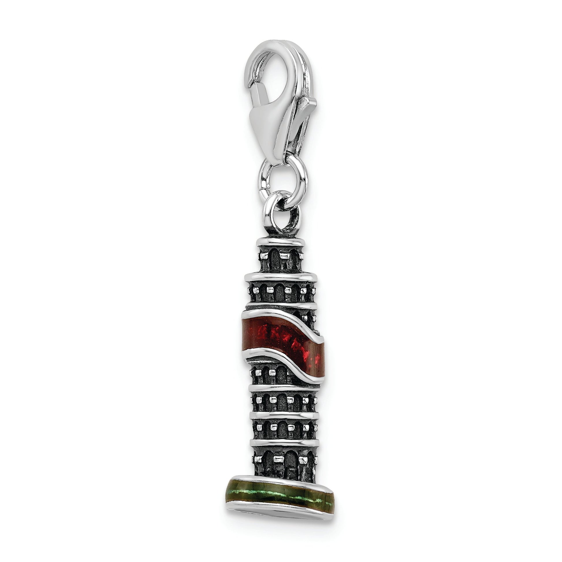 The Sterling Silver Ss Rh Enameled Leaning Tower Of Pisa Charm adds a whimsical touch to your jewelry collection. Crafted from pure 925 sterling silver, this charm showcases vibrant red and green enamel accents, symbolizing the iconic Italian landmark. The rhodium plating enhances its durability, lending a timeless silver tone that resists tarnishing. Its solid casted form ensures that this charm will stand the test of time. Whether worn on a necklace or bracelet, this charm brings a piece of Italy's rich history to your everyday style. Embrace elegance with the Sterling Silver Ss Rh Enameled Leaning Tower Of Pisa Charm.