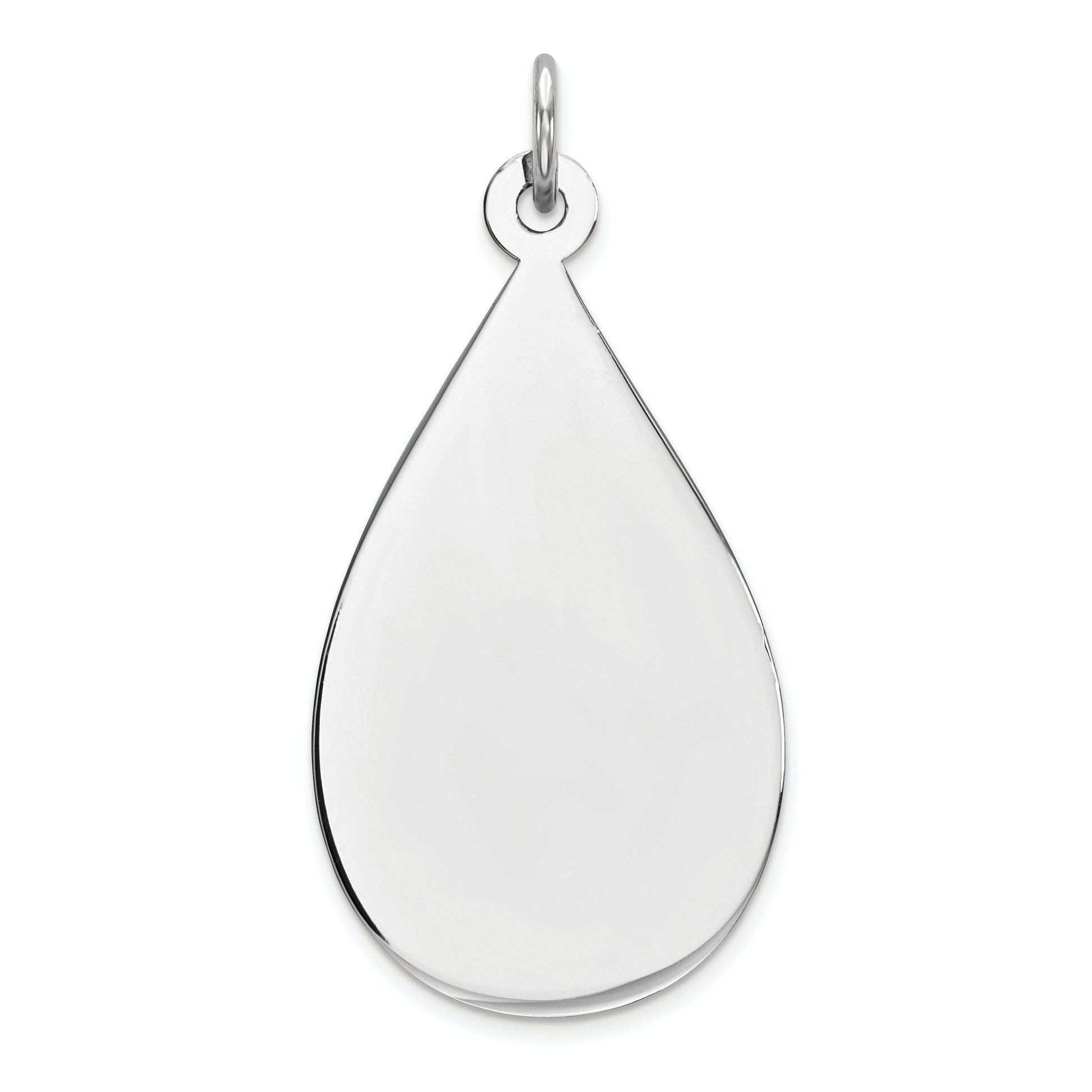 The Sterling Silver SS Rh-Plated Engravable Teardrop Charm brings elegance and style to any jewelry collection. Crafted from 925 sterling silver, this pendant features a polished front and a satin back, creating a perfect blend of shimmer and subtlety. Measuring 32 mm in length, it showcases a teardrop design that's simple yet sophisticated. Ideal for personalizing, it invites you to engrave a special message or initials, making it a memorable gift. Flaunt your unique style with this charming, solid piece and let the Sterling Silver SS Rh-Plated Engravable Teardrop Charm be a reflection of your personality.
