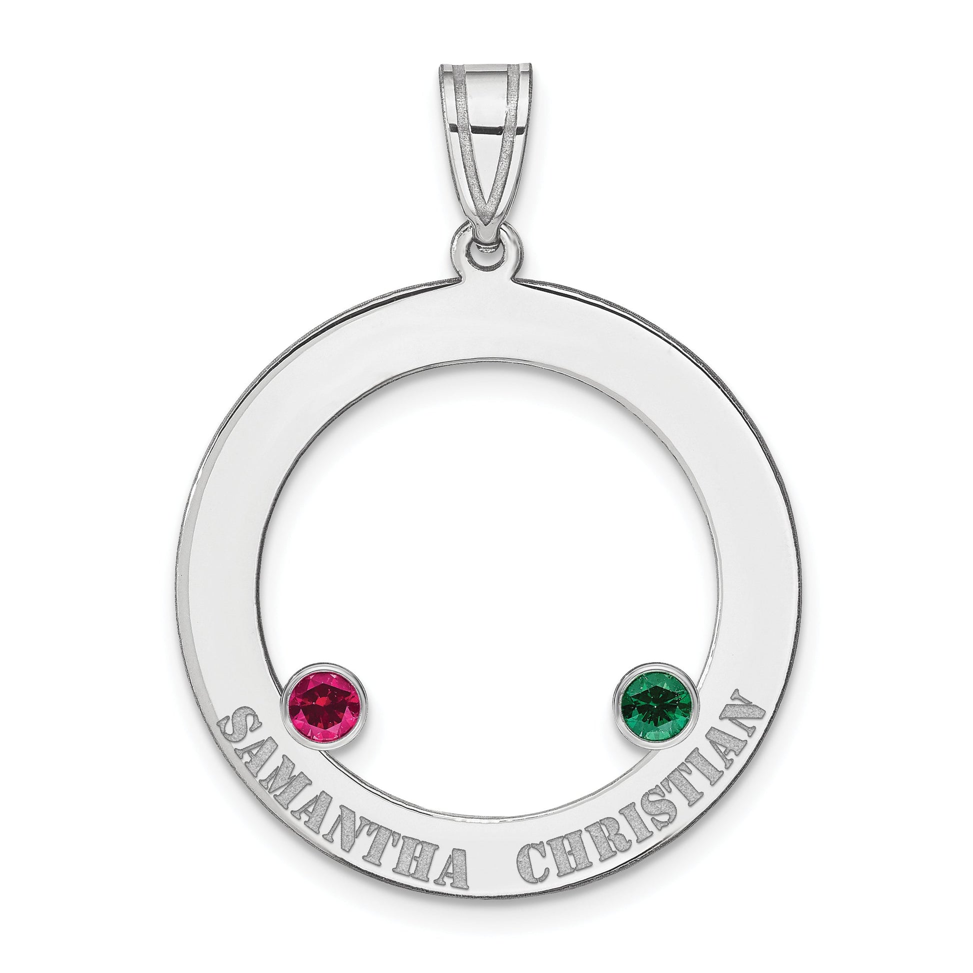 The Sterling Silver Ss/Rhodium-Plated 2 Birthstone Circle With Ss Bezel Family Pendant offers a touching way to keep loved ones close. Made from genuine 925 sterling silver, this pendant shines with a classic rhodium finish that ensures long-lasting beauty. The design features two customizable birthstones, adding a heartfelt personal touch just for your family. At 29 mm in length and 25 mm in width, the elegant circle design is both substantial and graceful. Celebrate your family with this timeless piece that captures personal moments in a charming way.