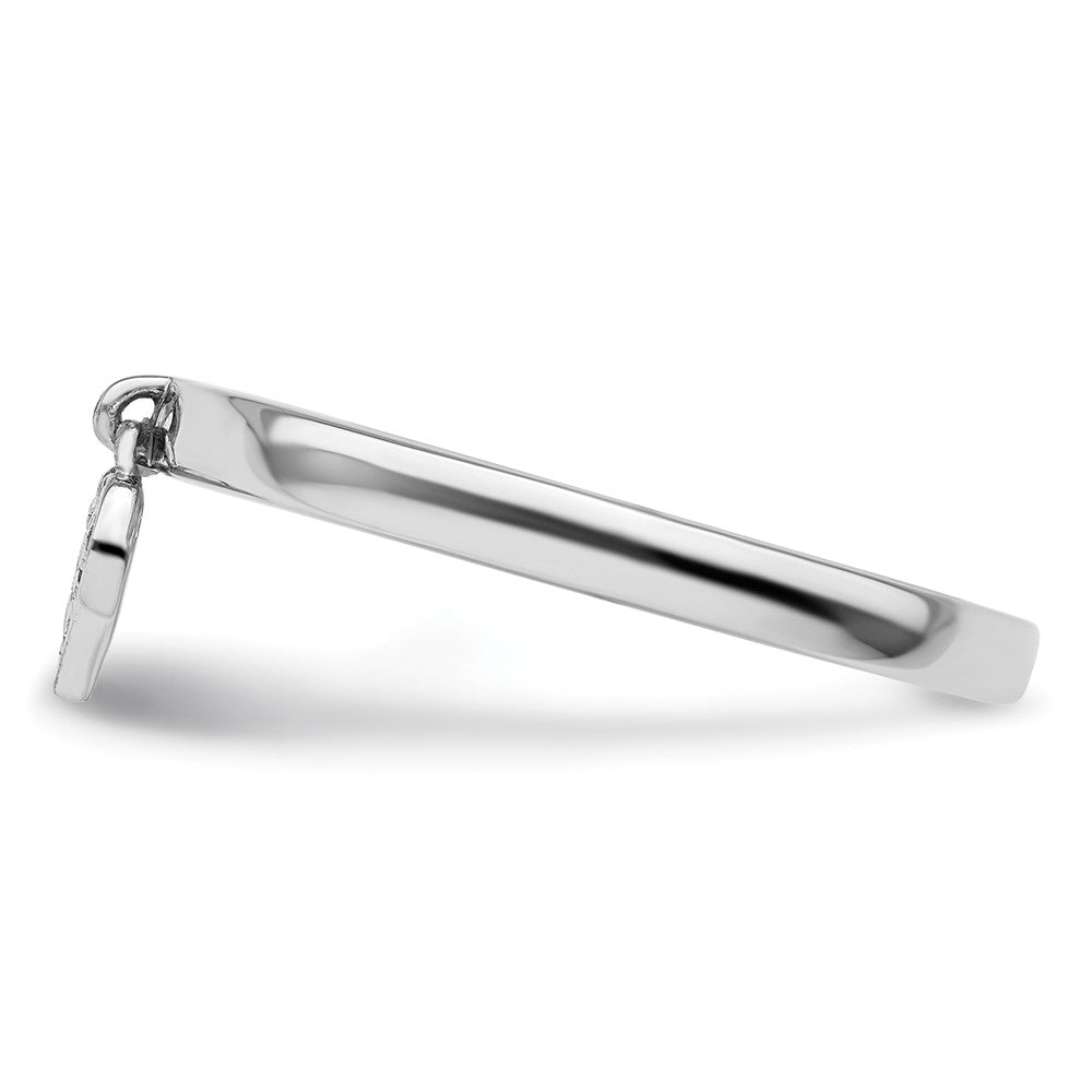 Discover the Sterling Silver Stackable Expressions Dangle Heart Diamond Ring, a blend of elegance and style. Crafted from pure 925 sterling silver and plated in rhodium, this ring offers a sleek, shiny look. It features three round diamonds, prong-set for a secure fit, totaling 0.040 ctw. The heart shape and delicate design make it perfect for stacking or wearing alone. Built with solid quality, this ring is cast and finished to last. The Sterling Silver Stackable Expressions Dangle Heart Diamond Ring adds charm to any outfit, making it a must-have for jewelry lovers.