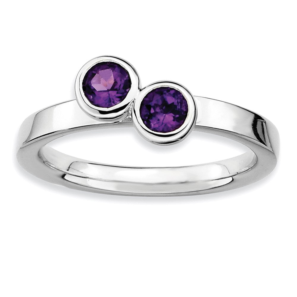 Sterling Silver Stackable Expressions Dbl Round Amethyst Ring