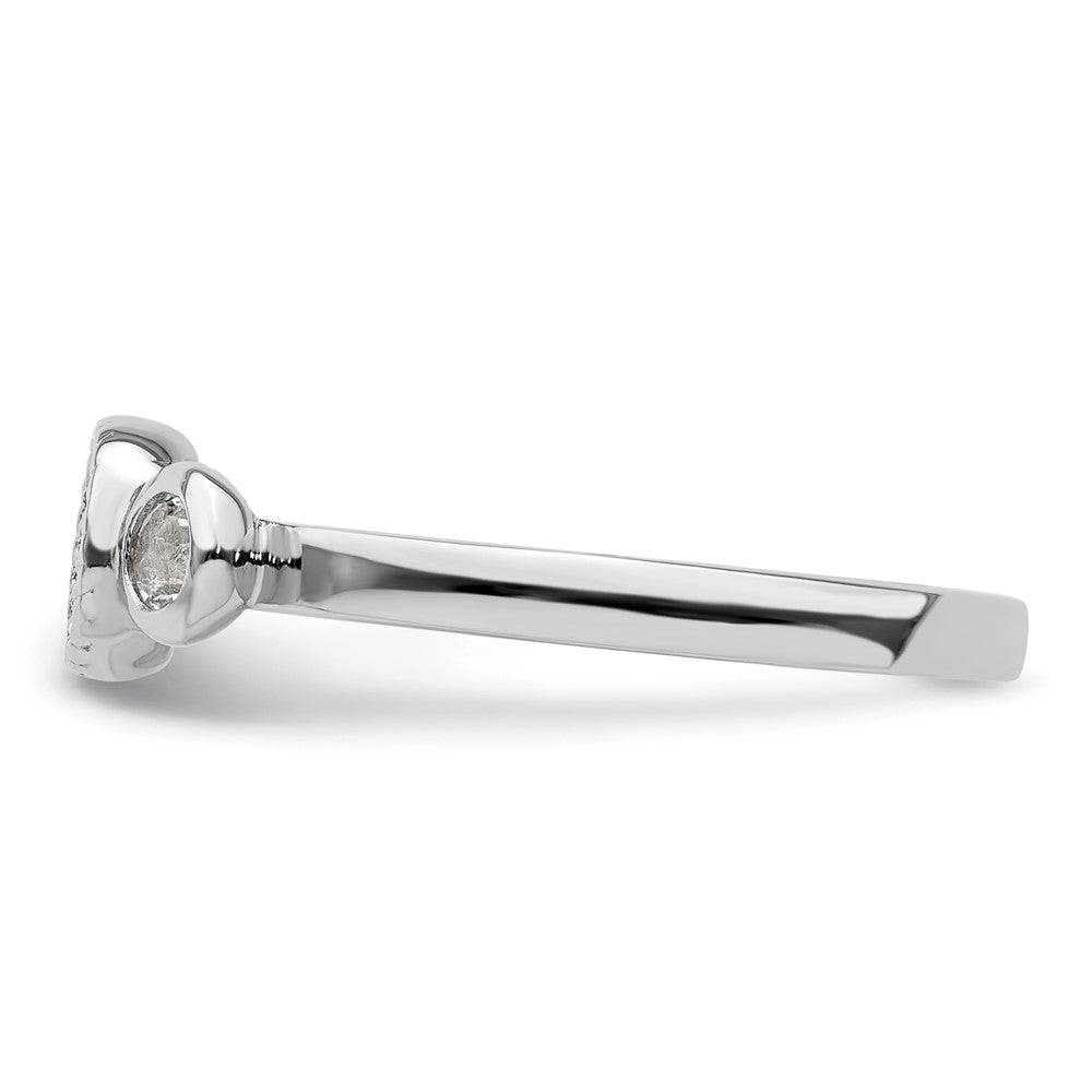 The 'Sterling Silver Stackable Expressions Dbl Round White Topaz & Dia. Ring' is a beautifully crafted piece of jewelry made of high-quality 925 sterling silver with a polished finish. It features a stunning combination of two exquisite stones - bezel set white topaz and pavé set natural diamonds, totaling 0.3 ctw and 0.05 ctw respectively. The band has a width of 2.25 mm and the stones have a round shape with a size of 3 mm and 1 mm each. The ring is solid and has been casted with precision. It is available as a single unit and is ideal for stacking. The white color of the ring complements its overall design, making it a perfect accessory for any occasion or attire. The stones used in this ring are natural and have not been enhanced in any way. This ring is a must-have for any jewelry lover who appreciates elegance and sophistication.