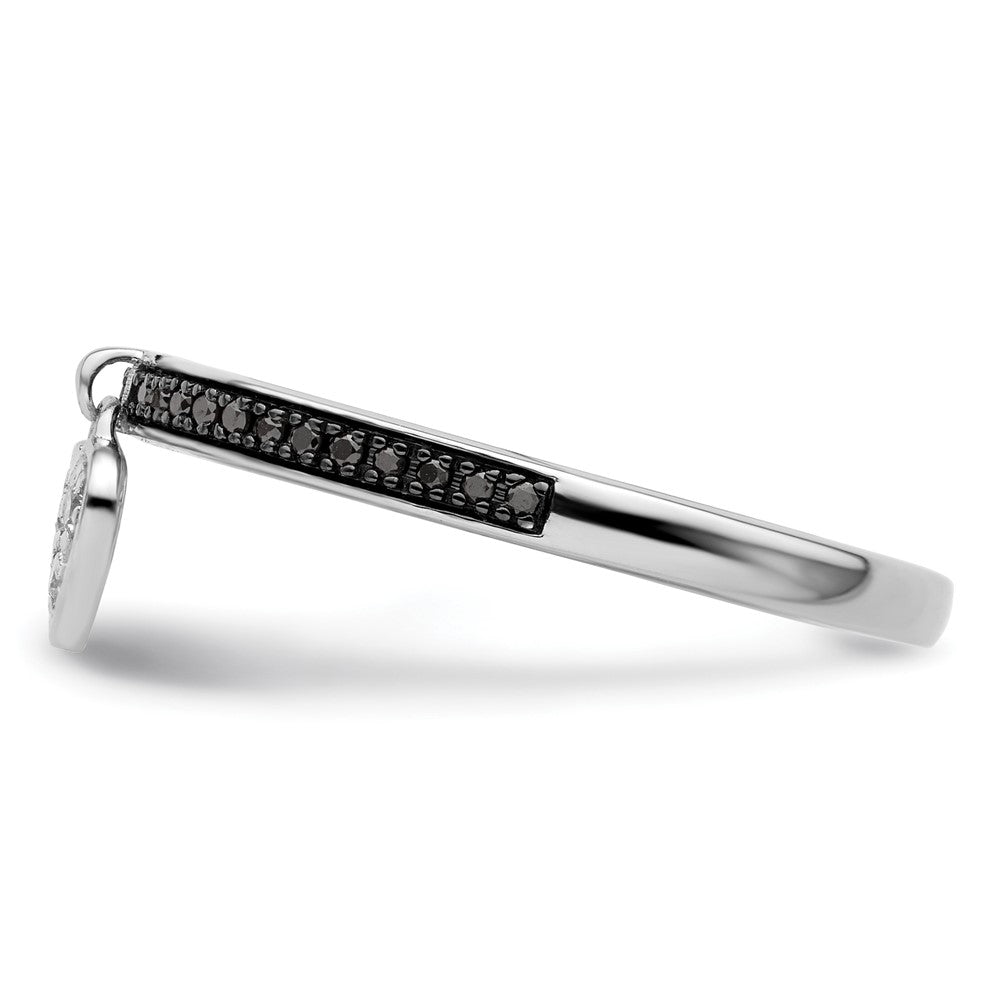 The Sterling Silver Stackable Expressions Heart Black & White Diamond Ring is a must-have for jewelry lovers. Crafted from pure 925 sterling silver, it offers durability and timeless style. This ring features 22 round white diamonds and 3 black diamonds, all prong-set for a secure fit. Its stacking design allows you to style it your way, whether worn alone or paired with other rings. The rhodium plating gives it a sleek shine while protecting against tarnish. With natural diamonds and a casted build, the Sterling Silver Stackable Expressions Heart Black & White Diamond Ring combines beauty and strength for everyday wear.