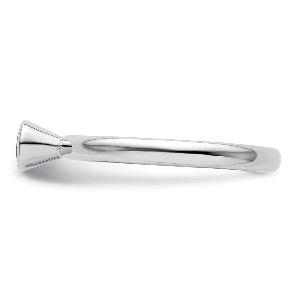The Sterling Silver Stackable Expressions High 4mm Round Amethyst Ring is a sleek piece perfect for everyday wear. Crafted from 925 sterling silver and finished with a shiny rhodium coat, it shows off a beautiful purple amethyst stone. The round stone measures 4 mm and is bezel set for a secure fit. Its slim 2.25 mm band makes it easy to stack or wear alone. Made through casting, the ring offers solid quality with a natural, heated gemstone treatment. With its timeless design, the Sterling Silver Stackable Expressions High 4mm Round Amethyst Ring adds a touch of charm and style to any look.