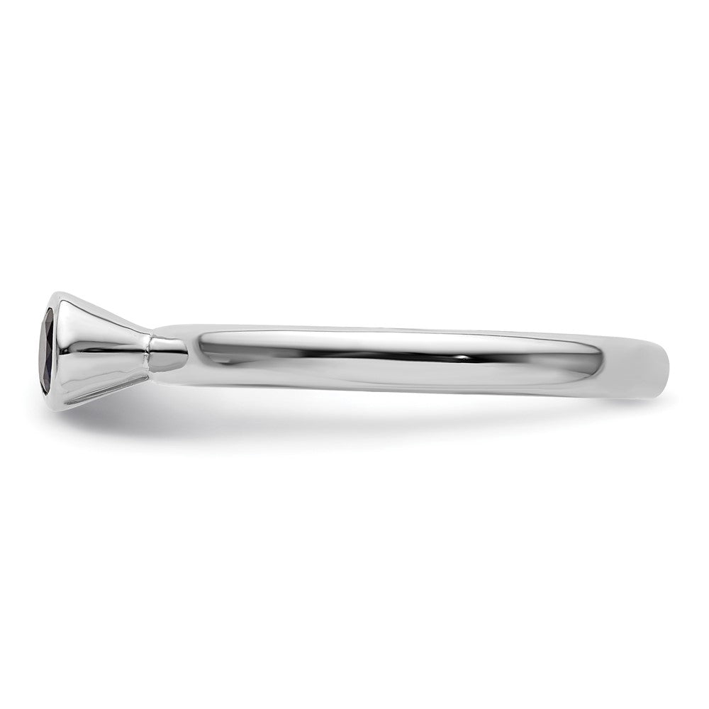 Discover the Sterling Silver Stackable Expressions High 4mm Round Cr. Sapphire Ring, a sleek piece perfect for everyday wear. Crafted from 925 sterling silver, it features a polished finish that adds shine and style. The ring showcases a single lab-created sapphire, bezel-set in a durable rhodium plating, which enhances its beauty and resist tarnish. With a 2.25 mm band width and a 4mm round stone, this stackable ring combines elegance with versatility. Ideal for mixing and matching, the Sterling Silver Stackable Expressions High 4mm Round Cr. Sapphire Ring brings subtle sparkle and modern charm to your jewelry collection.