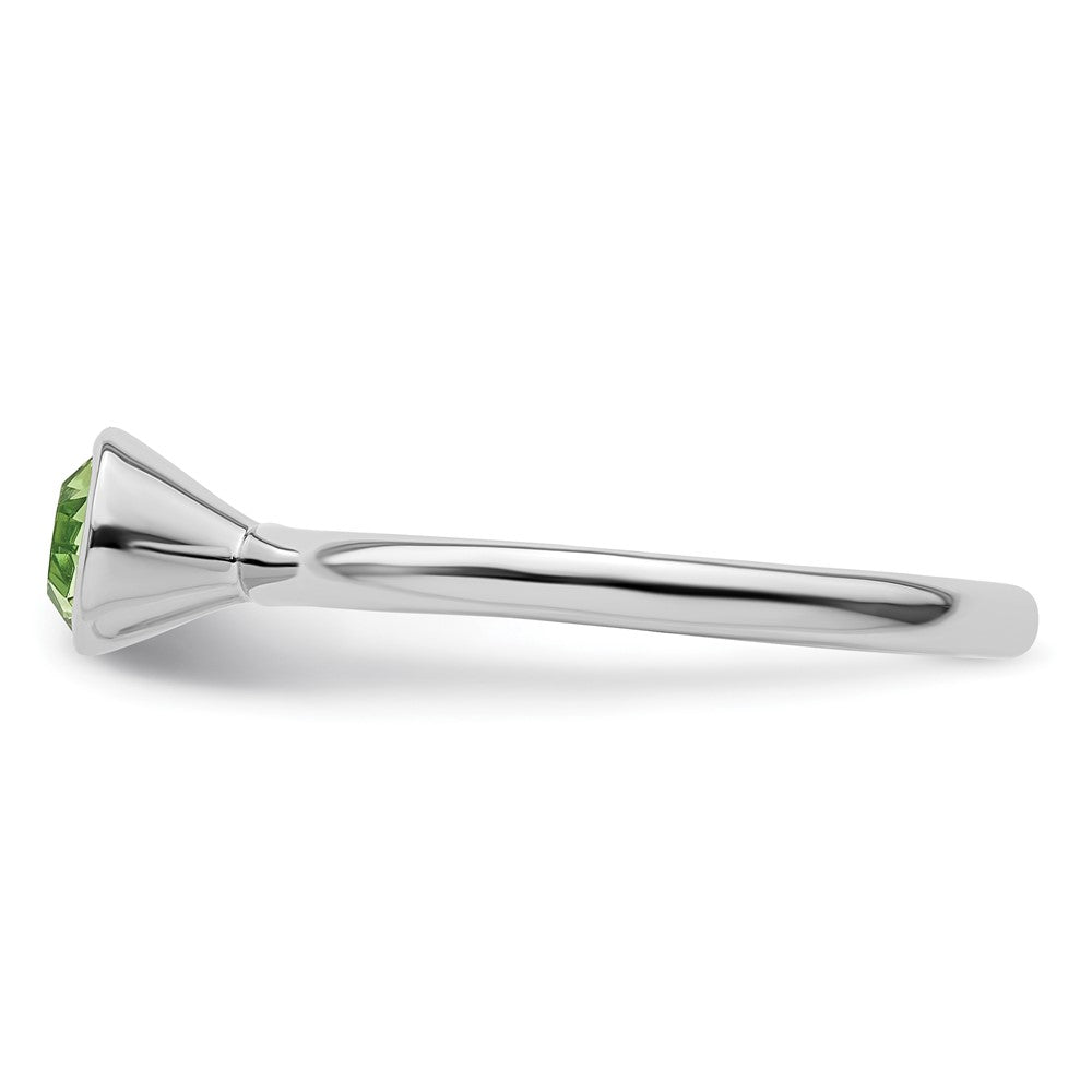 Discover the Sterling Silver Stackable Expressions High 5mm August Crystal Ring, a sleek piece perfect for everyday wear. Made from high-quality 925 sterling silver, it features a polished finish that catches the light with style. The ring is adorned with a vibrant green round crystal, bezel-set for a secure fit and eye-catching sparkle. Its 2.25mm band is snug and comfortable, making it an ideal addition to your jewelry collection. Whether worn alone or stacked with others, the Sterling Silver Stackable Expressions High 5mm August Crystal Ring adds a touch of bold charm to any look.