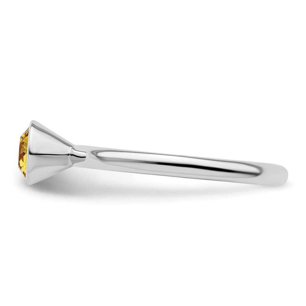 Discover the Sterling Silver Stackable Expressions High 5mm November Crystal Ring, a perfect piece to add sparkle to your day. Crafted from pure 925 sterling silver, this ring features a bright, polished finish that catches the eye. It showcases a single yellow crystal set in a secure bezel that adds a pop of color and charm. Its sleek 2.25mm band makes stacking easy for versatile wear. Made through a casting process, the ring offers solid quality and durability. The Sterling Silver Stackable Expressions High 5mm November Crystal Ring is a must-have that brings style and elegance to your jewelry collection.