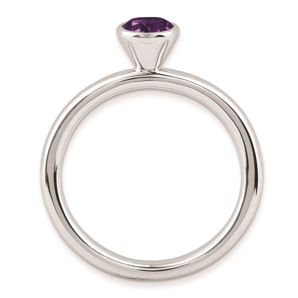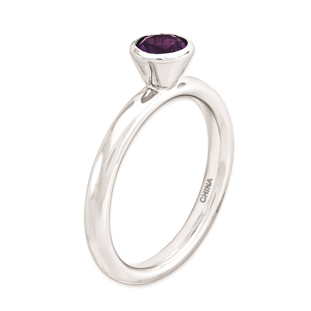 Sterling Silver Stackable Expressions High 5mm Round Amethyst Ring