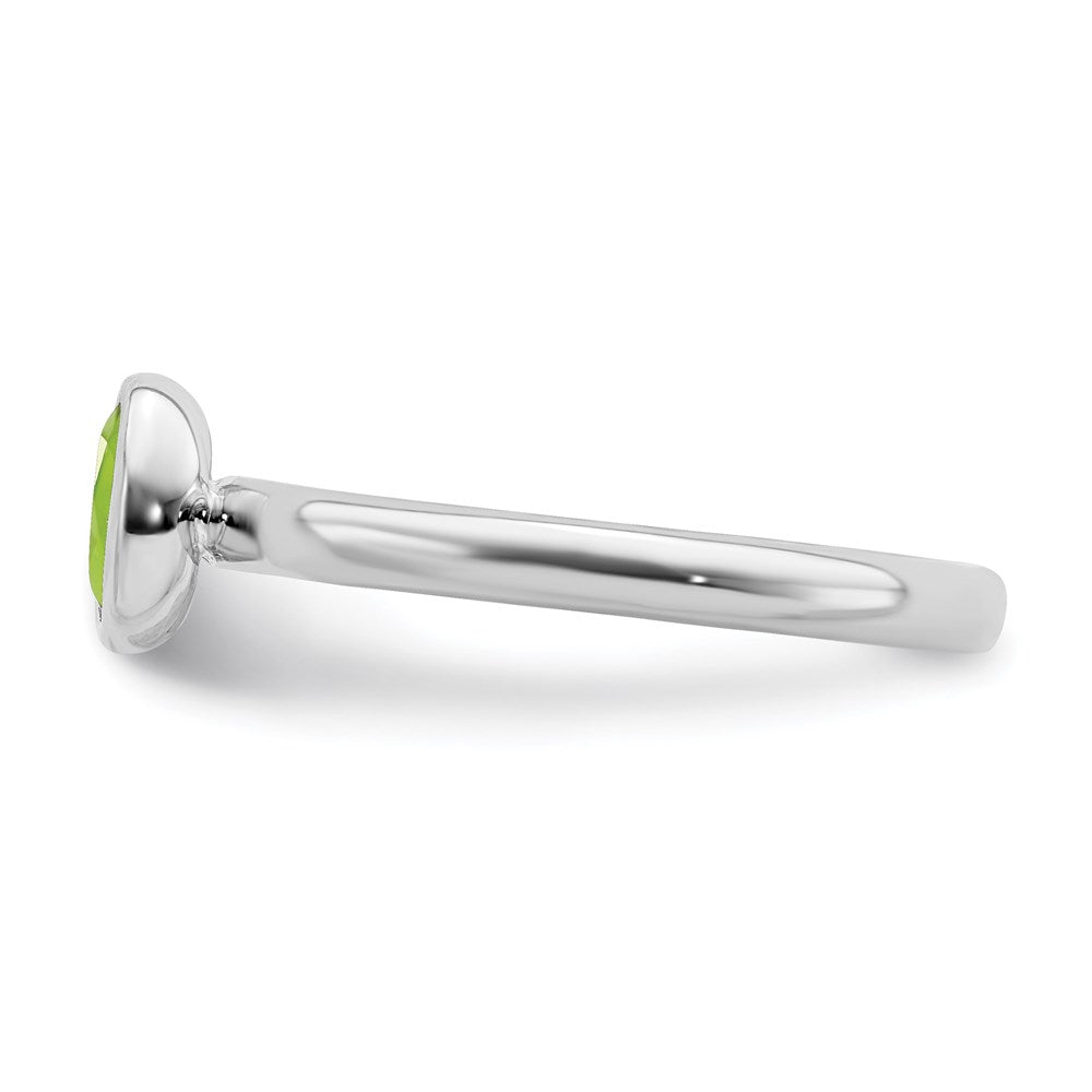 Discover the Sterling Silver Stackable Expressions Oval Peridot Ring, a sleek piece that adds a fresh touch to your look. Crafted from high-quality 925 sterling silver, this ring features a bright, polished finish that makes it stand out. The bezel-set peridot gemstone, with its lively green hue and natural shine, offers a pop of color that’s perfect for any style. With a narrow 2.25 mm band and a 6 x 4 mm oval stone, it comfortably stacks with other rings or shines solo. The durable cast design ensures it lasts, making the Sterling Silver Stackable Expressions Oval Peridot Ring your go-to jewelry piece.